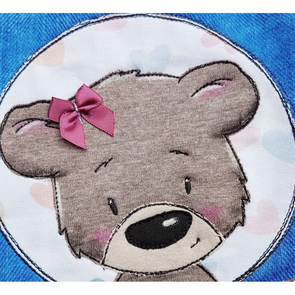 Vorderseite Baumwollstoff, der Teddy ist aus Baumwollfleece, Rückseite Teddystoff.