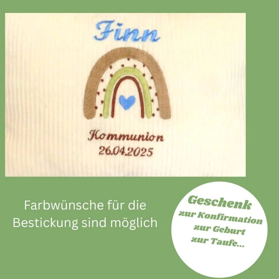 Auf Wunsch können die Stickfarben gerne verändert werden.