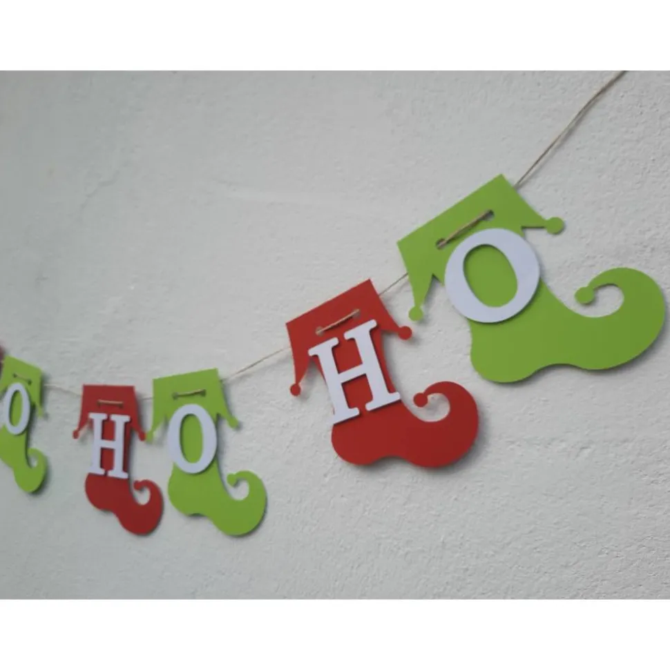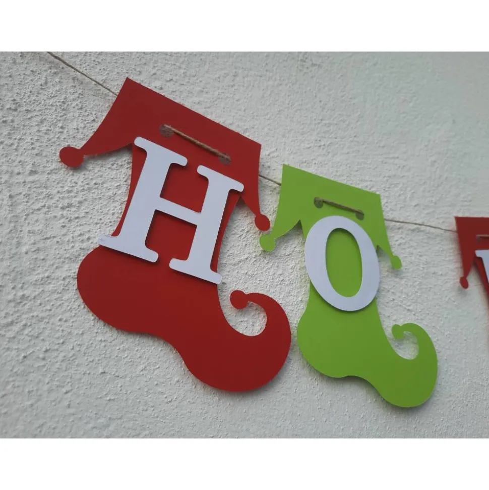 Diese lustige Girlande aus roten und grünen Elfen Stiefeln zieht auf jeden Fall die Blicke auf sich.
