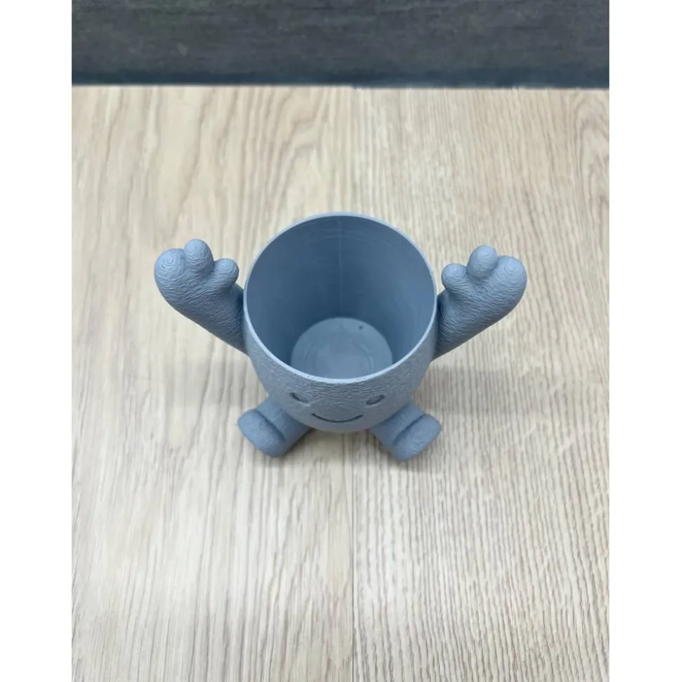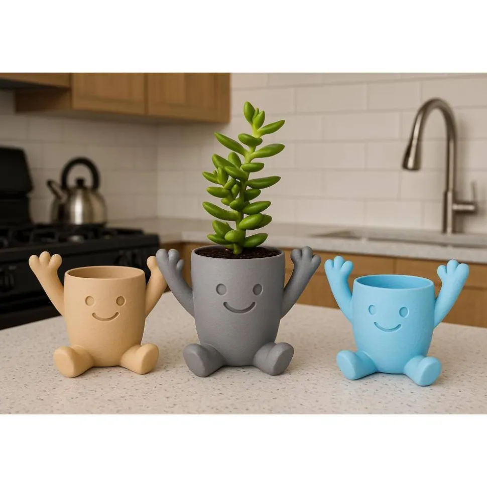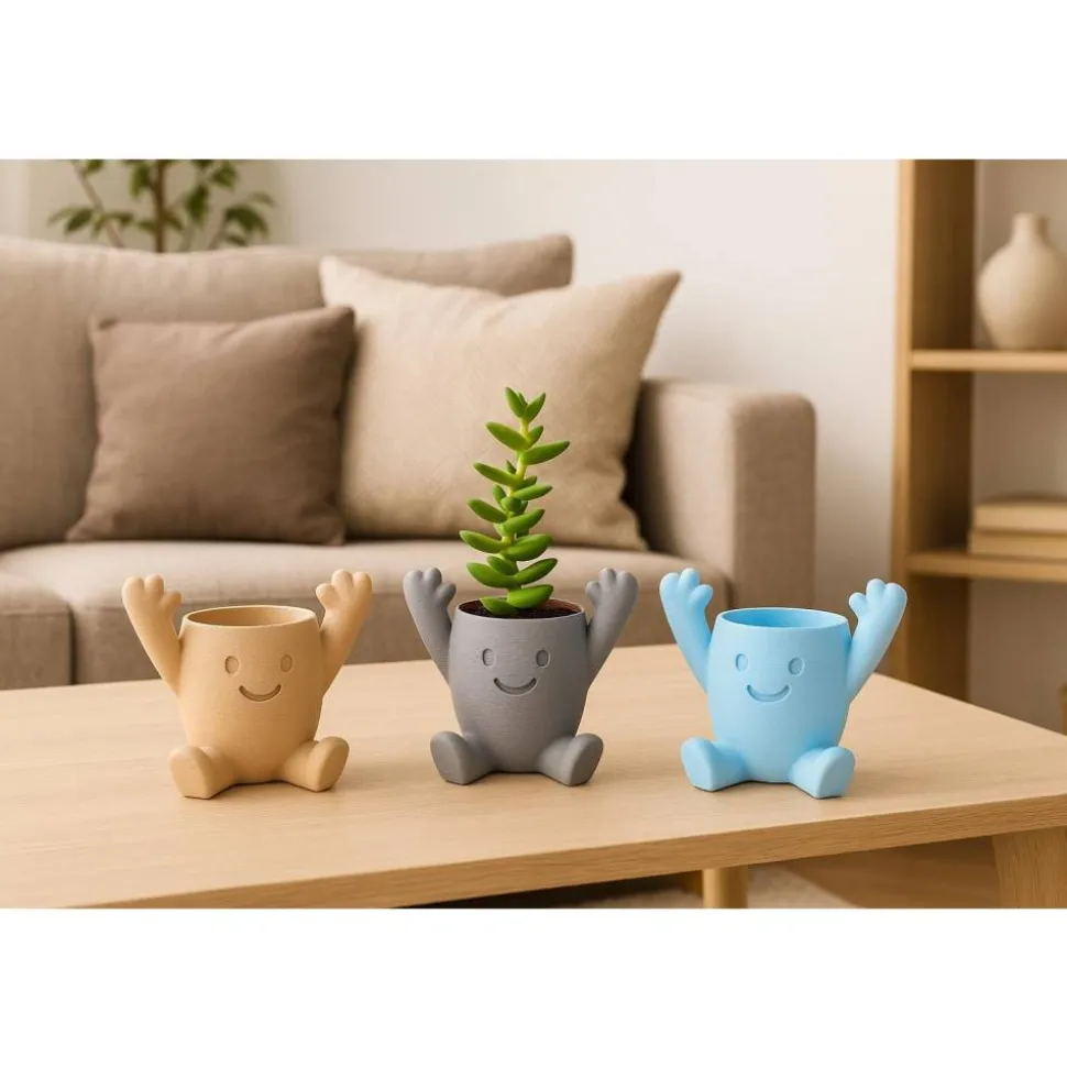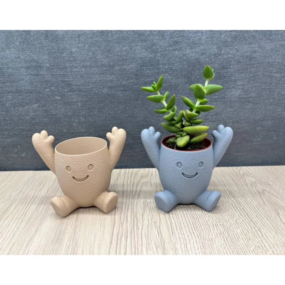 Die kleine Pflanzfigur mit lächelndem Gesicht und hochgestreckten Armen ist perfekt für Sukkulenten, Kakteen & kleine Zimmerpflanzen – ob auf der Fensterbank, im Wohnzimmer, in der Küche oder im Büro.