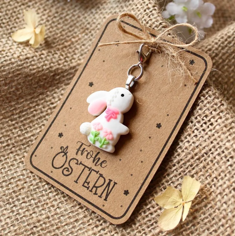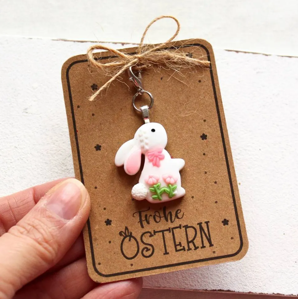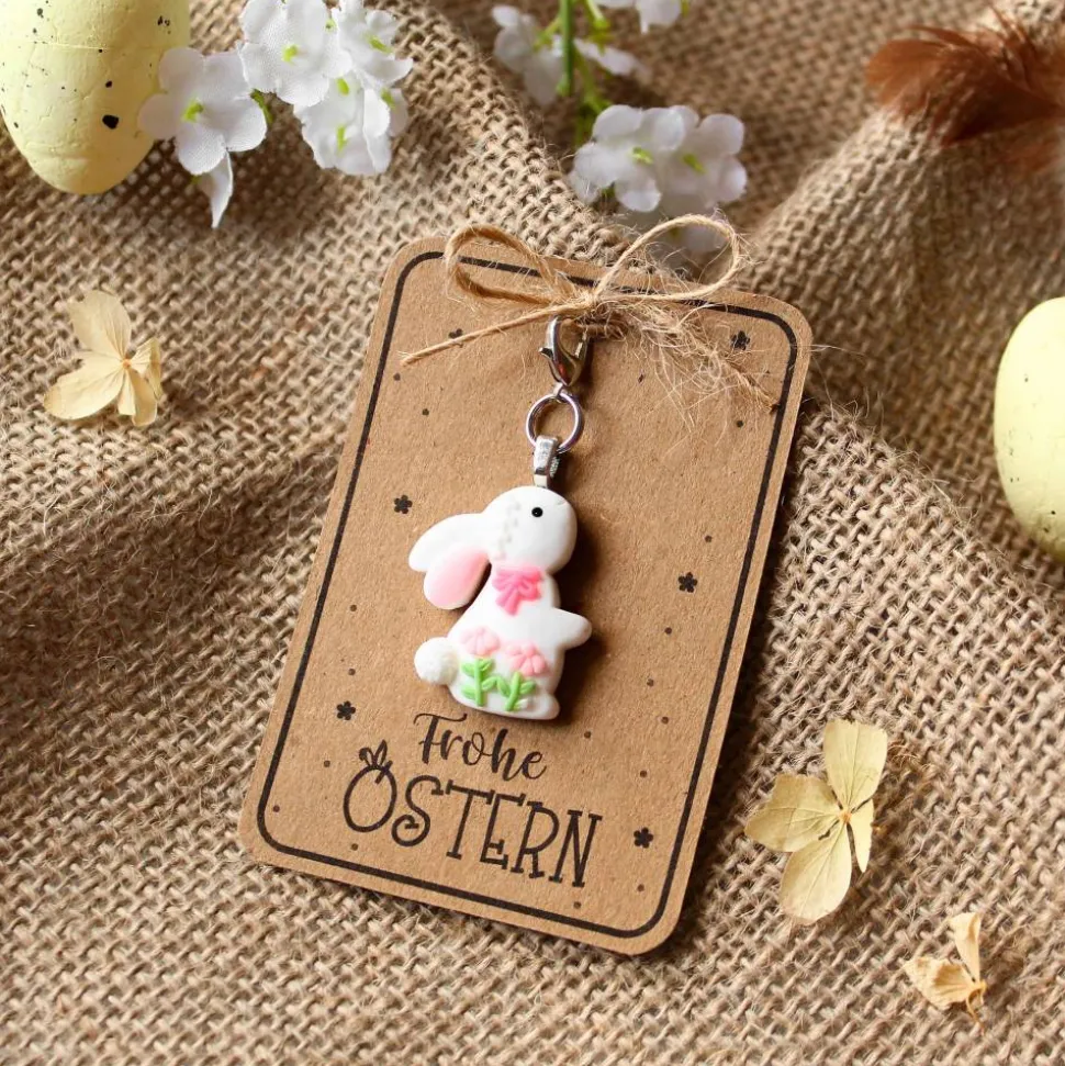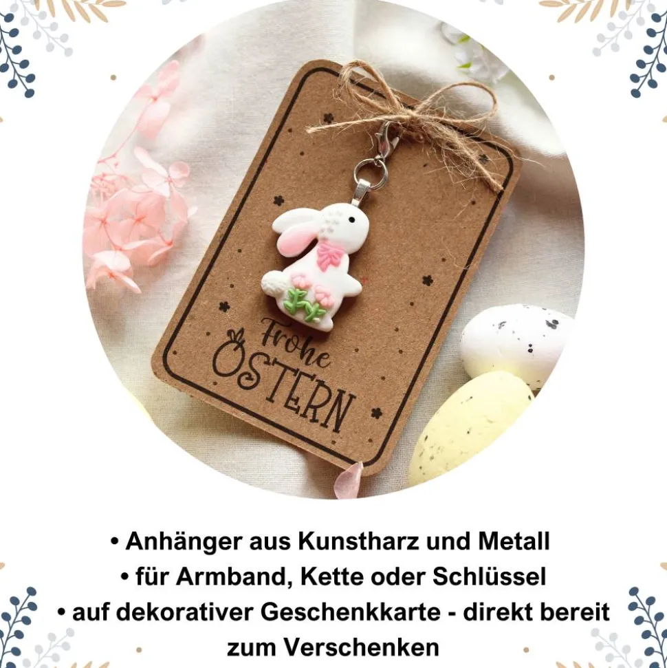 Verschenke Freude zu Ostern mit einem liebevoll handgefertigten Hasen-Anhänger auf Geschenkkarte!