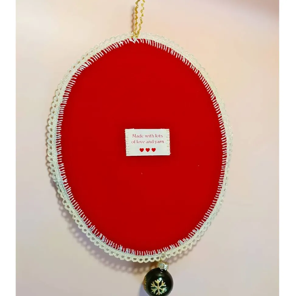 Mit einer Höhe von 24 cm ist dieses textile Weihnachtsmedaillon ein charmantes Accessoire für Dein Wohnzimmer, den Eingangsbereich oder das Esszimmer. Die zarte, cremefarbene Spitzenborte rundet das Design harmonisch ab.