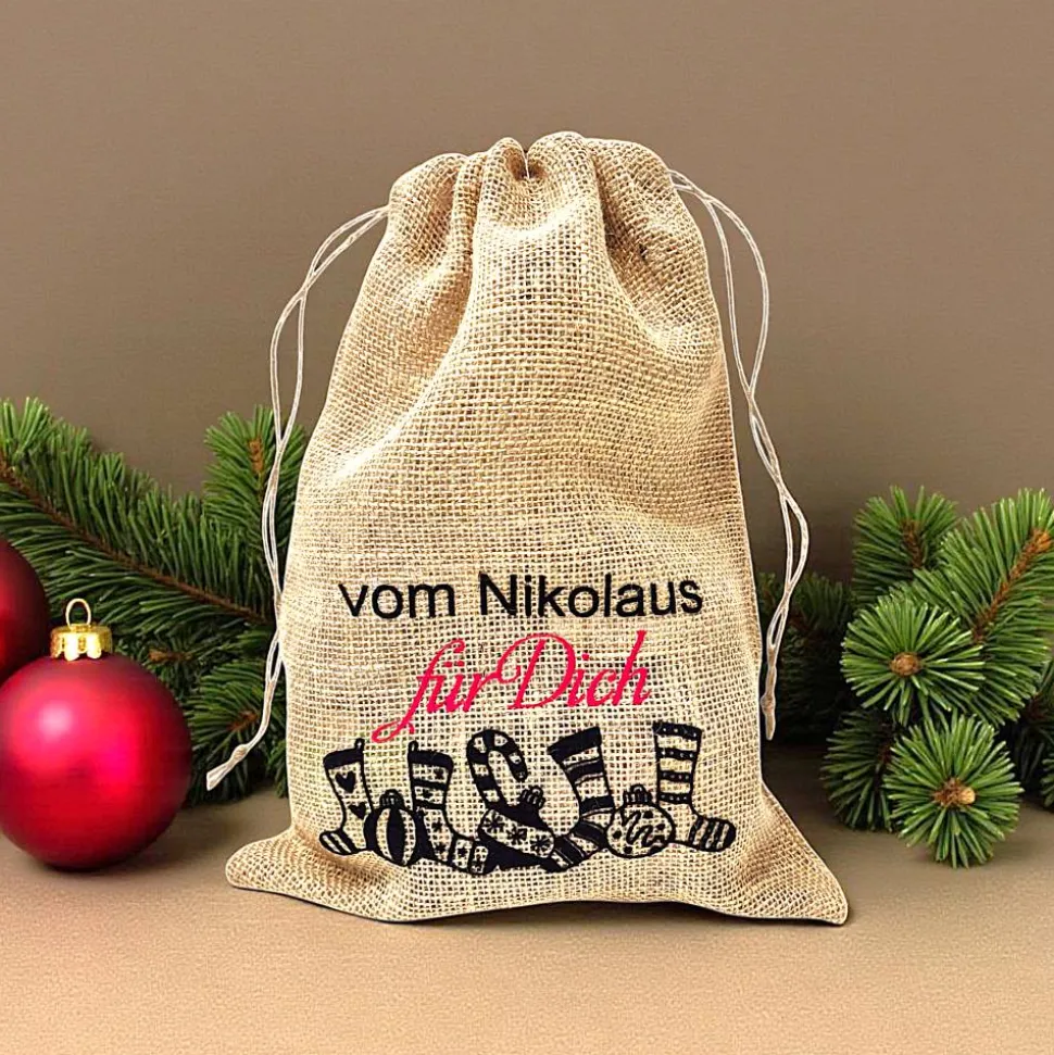 Gefüllt werden können die Säckchen mit den traditionellen Kleinigkeiten, wie Obst und Nüsse, sowie Gutscheinen, kleine Mitbringsel, Geld- und oder Schmuckgeschenke und vieles Mehr. Mit der Größe 30x23cm passt in das Säckchen ordentlich was rein.