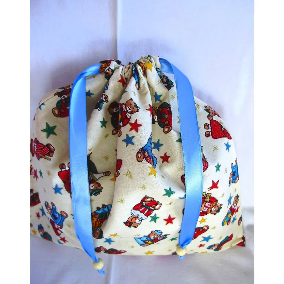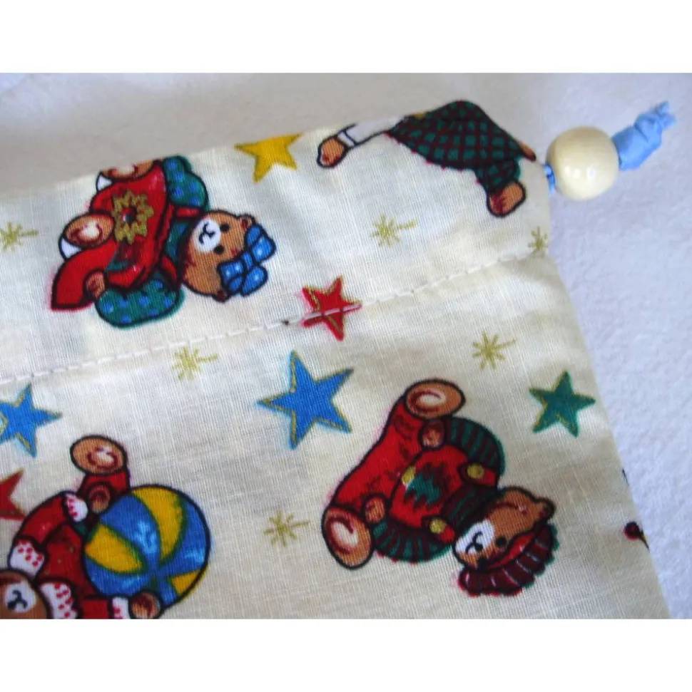 Dieses beige Nikolaussäckchen mit weihnachtlichen Teddybärmotiven ist ideal geeignet für Süßigkeiten und andere nette Kleinigkeiten in der Advents- und Weihnachtszeit.