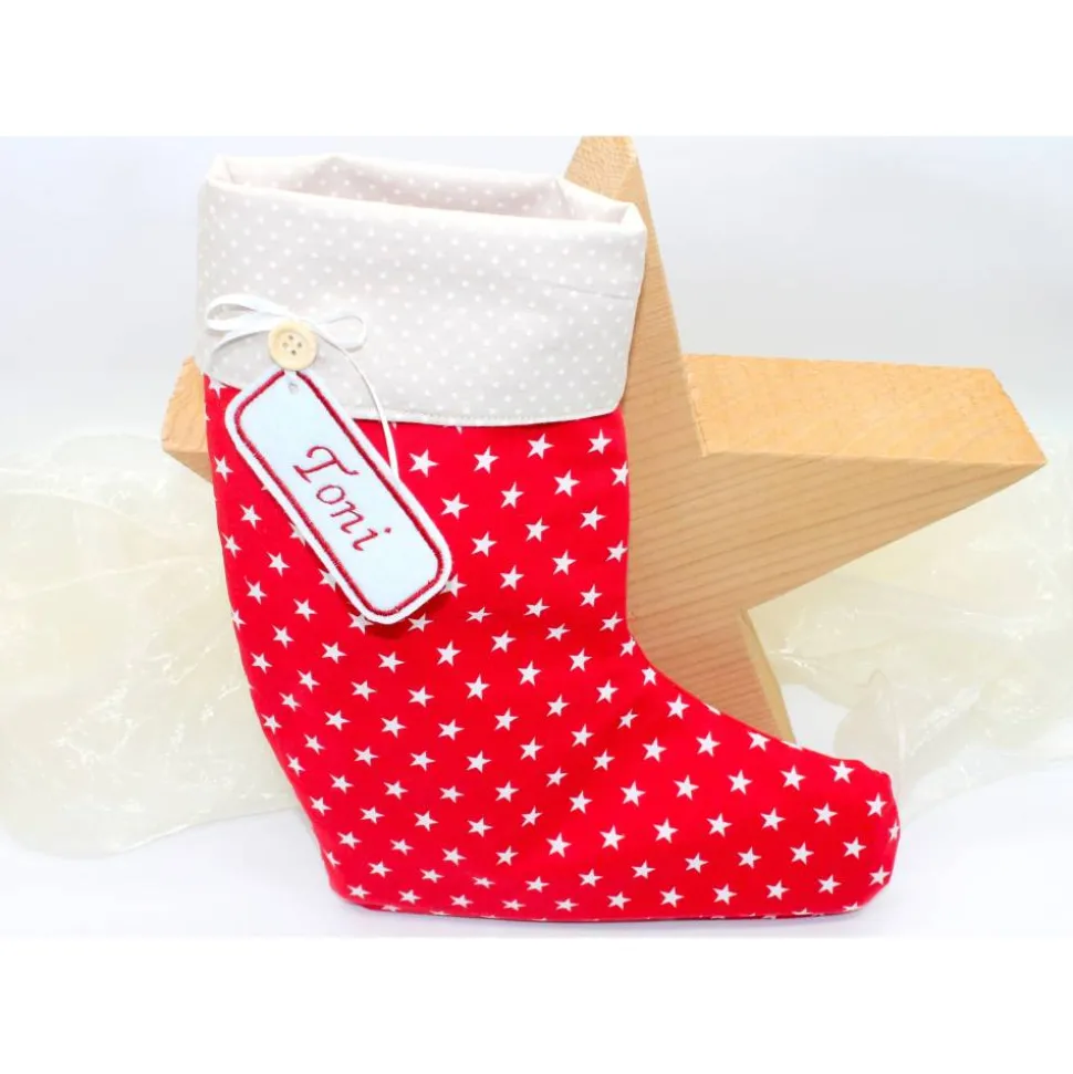 Der Nikolausstiefel ist ohne Inhalt! Der Holzstern im Hintergrund dient nur zur Deko und wird nicht verkauft.