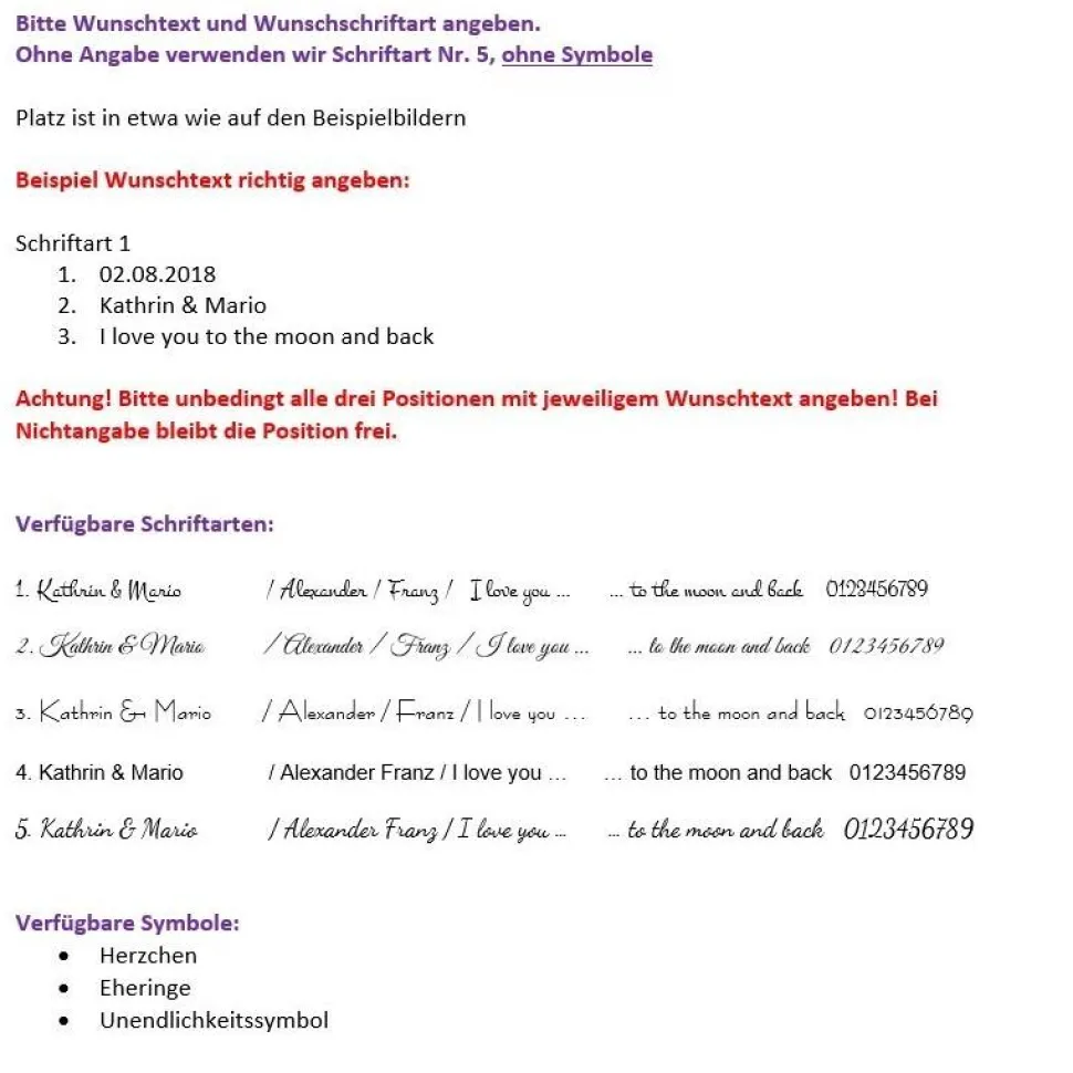 ❗️ Info bezüglich Wunschgravur: