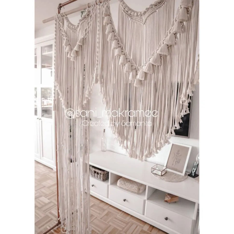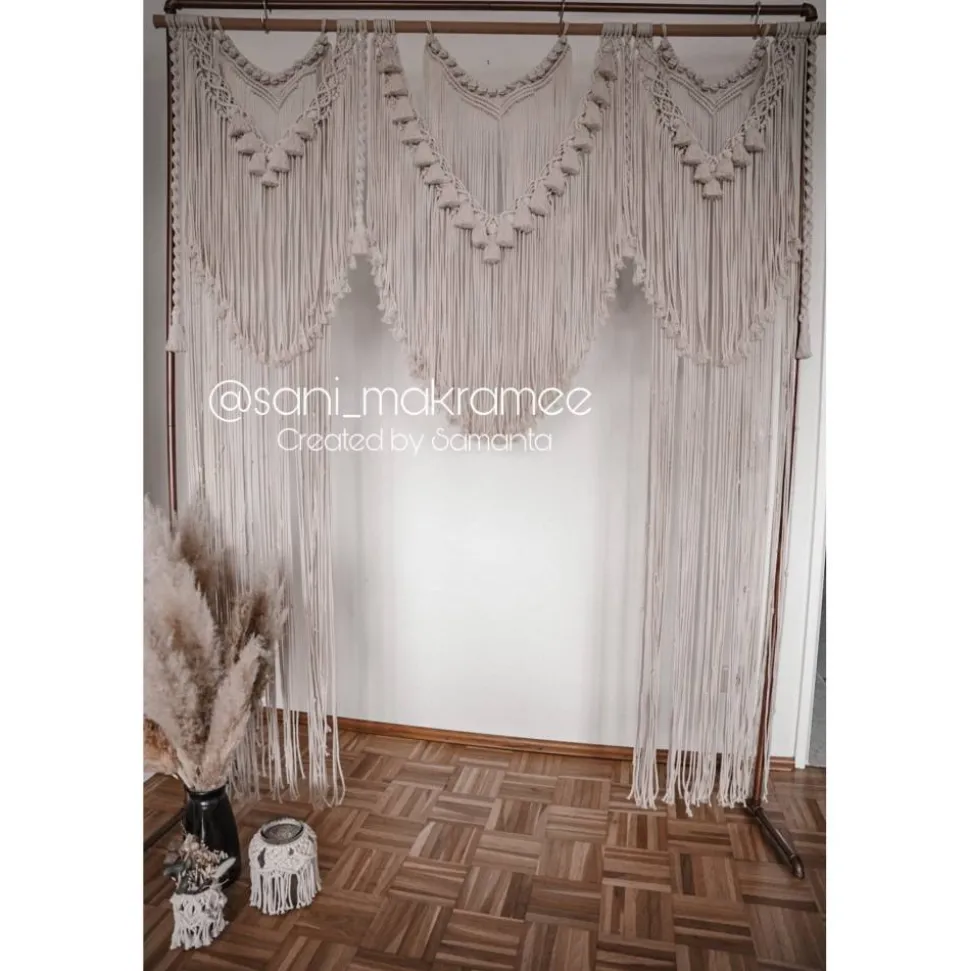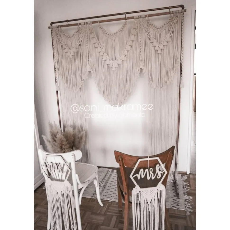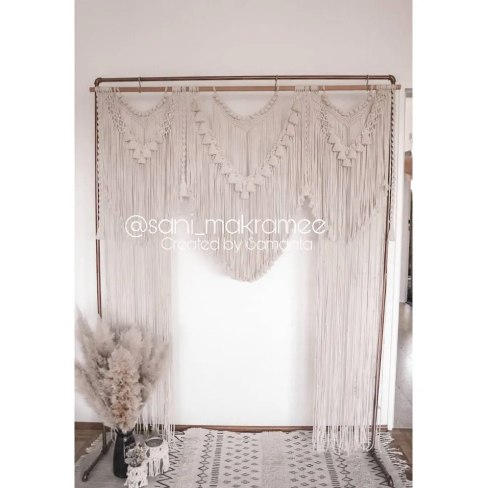 Dekorationsartikel wie Vasen, Pampasgras, Stühle, Traumfänger und das Traubogen-Gestell dienen nur zu Dekorationszwecken und sind im Preis nicht inbegriffen. Verkauft wird ausschließlich das Makramee am Holzrundstab.