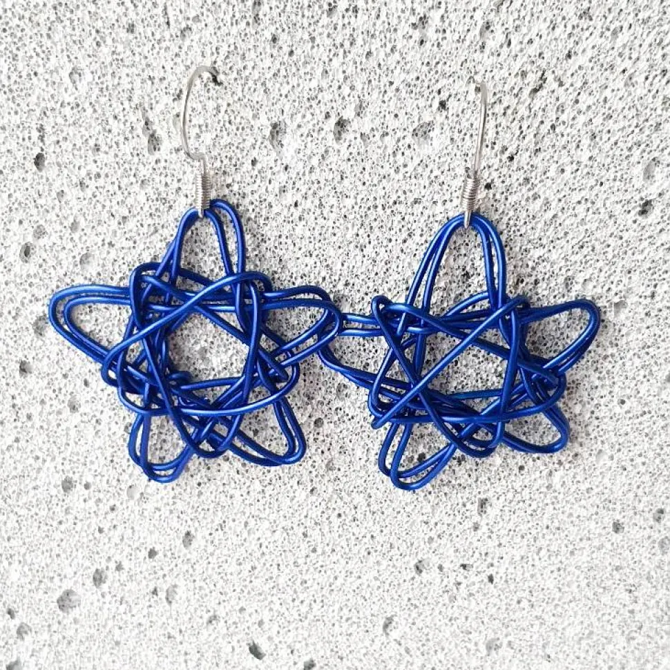 Sternohrringe aus Aludraht in 2 Blautönen, mit einem Ohrhaken aus Edelstahl