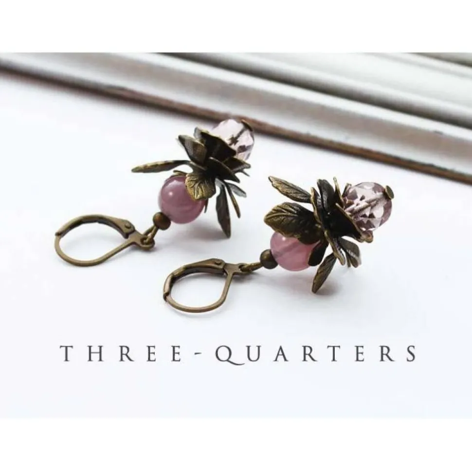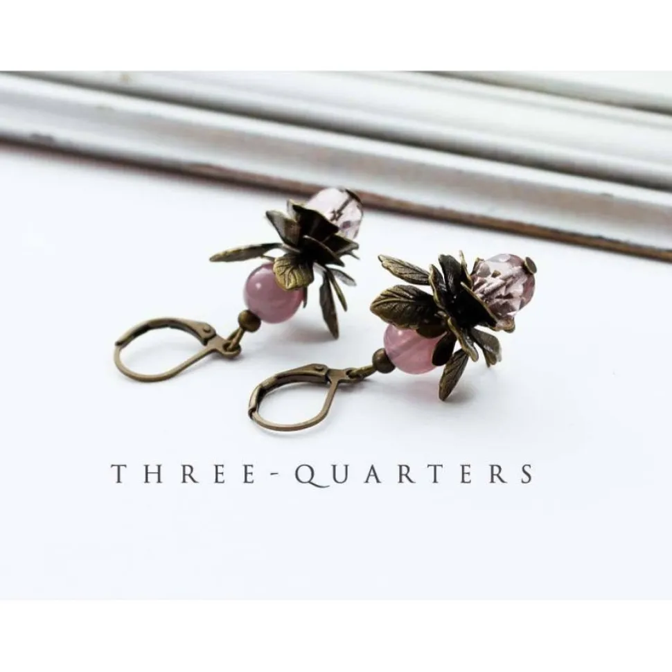 Schöne Ohrringe im vintage Stil. Große Perlenkappen in Blütenform, bronze. Perlen in lila, flieder.