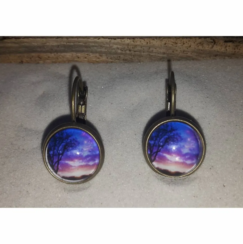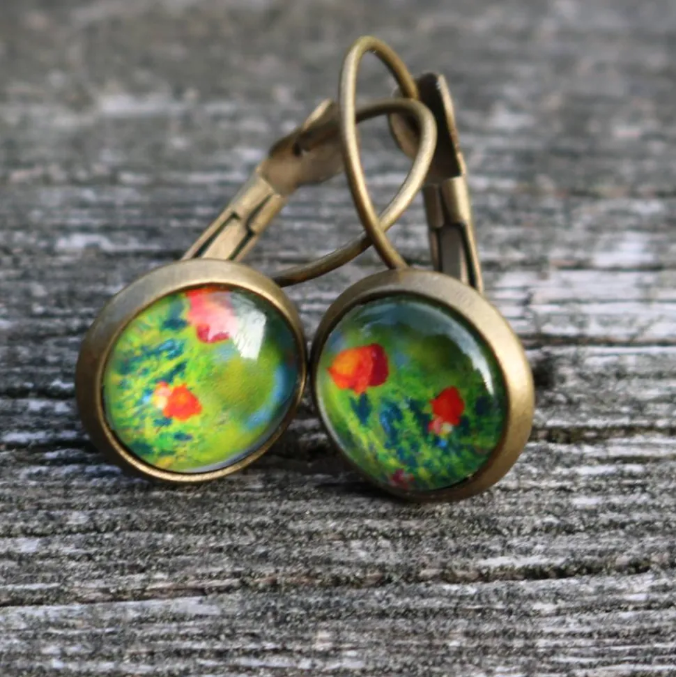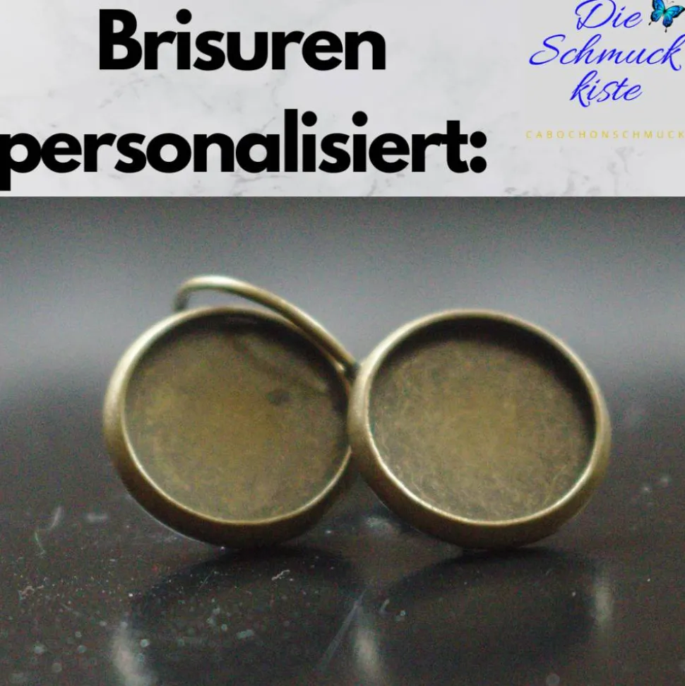12mm großer Glasstein in bronzefarbenen Kupfer Brisuren