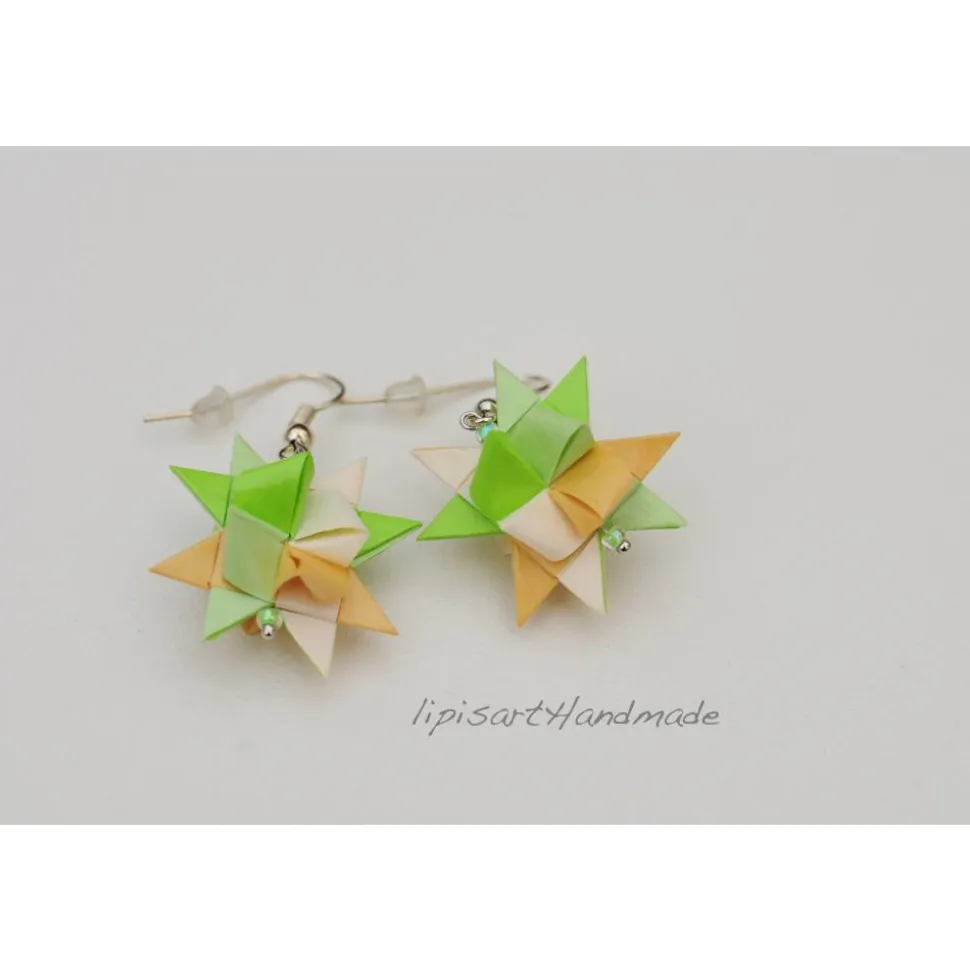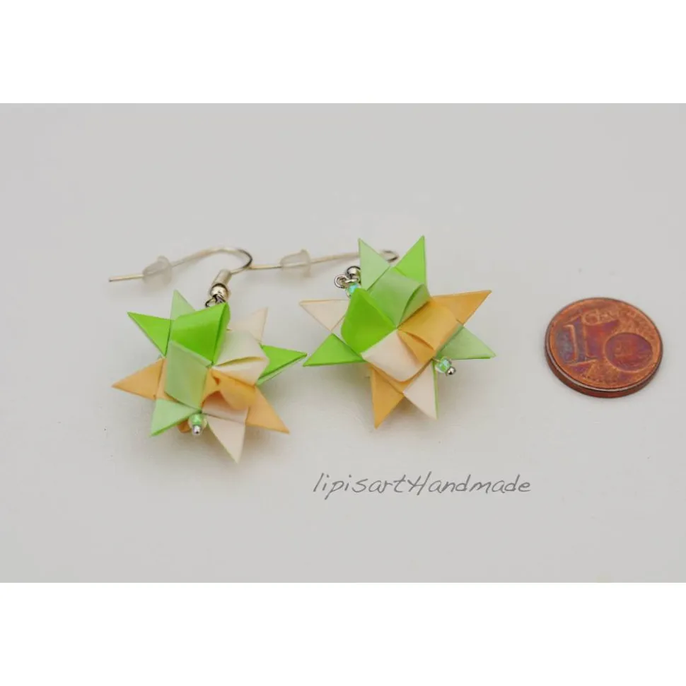 Fröhliche klassische grüne Papier-Sterne in Pastell. Da muss man doch nicht auf Weihnachten warten 🙂 Kann man aber auch an Weihnachten tragen.