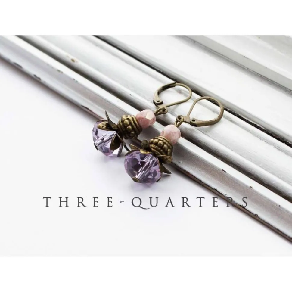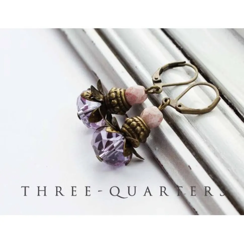 Schöne Ohrringe im shabby, vintage Stil. Perlen oval in flieder, lila. Dazu Perlen in rosa und weiß marmoriert.