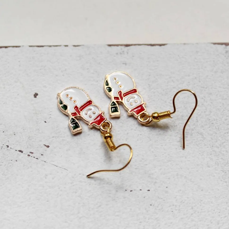 Die entzückenden Schneemann-Anhänger sind aus goldfarbenem Metall und Emaille gefertigt. Die Ohrhaken aus Edelstahl bieten nicht nur einen sicheren Halt, sondern sorgen auch für Tragekomfort den ganzen Tag über.
