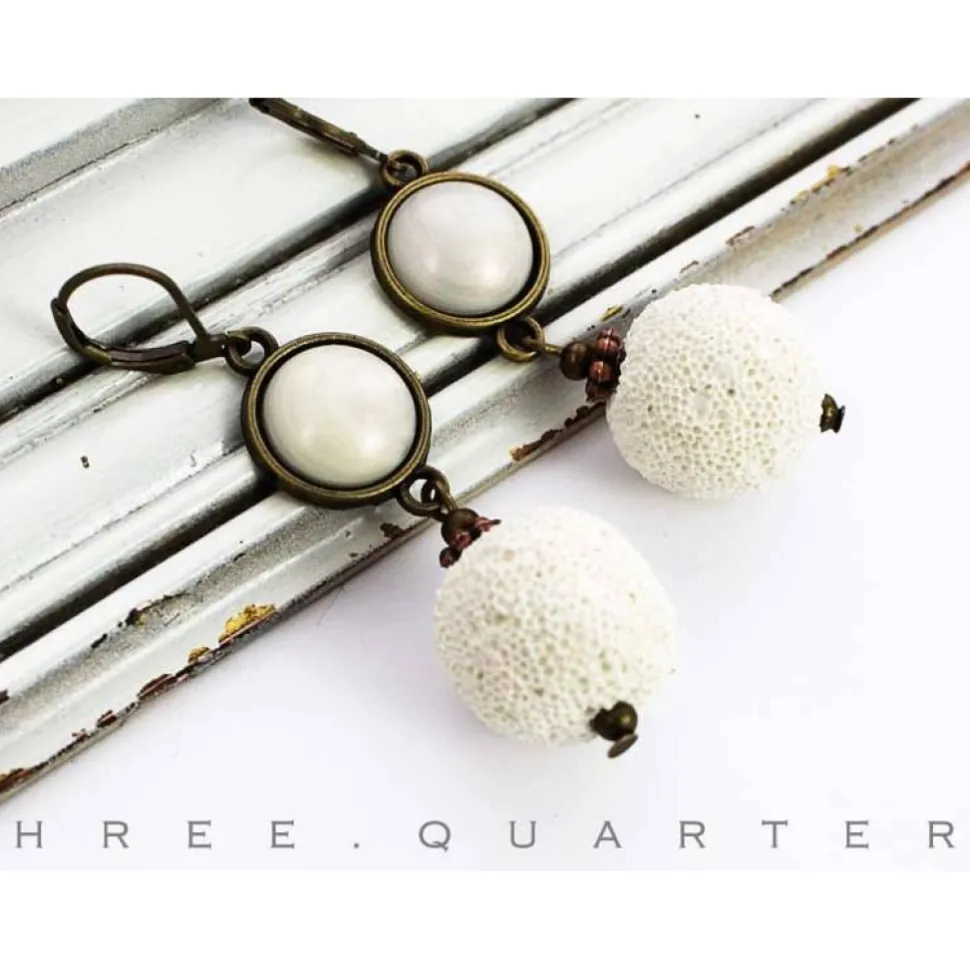 Ohrringe mit Lava Perlen in weiß. An Cabochon Anhänger mit Stein in weiß/cremeweiß.