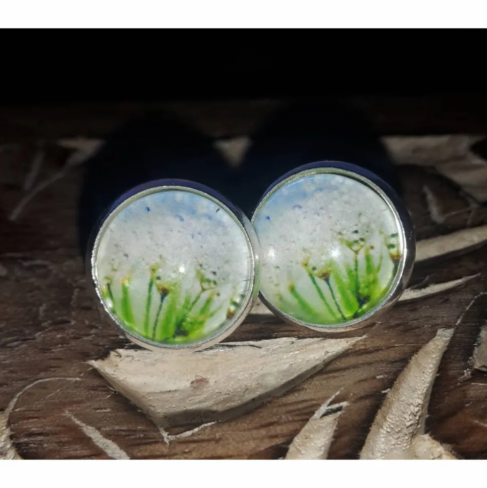 Abmessungen: 10mm großer Glasstein in Edelstahl Steckern. Inklusive Silikonstopper für Ohrstecker