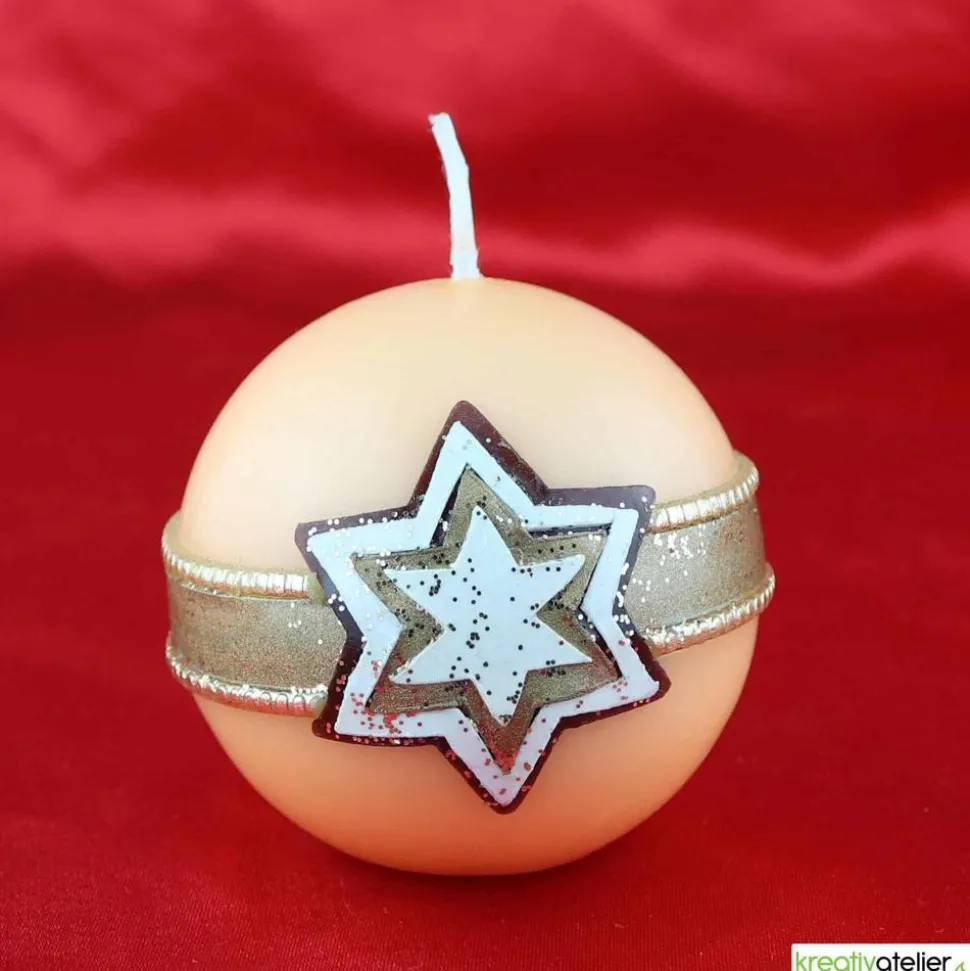 Als Rohling verwende ich ausschließlich Qualitätskerzen, die in Deutschland nach traditionellen Verfahren hergestellt werden. Die Weihnachtskerze in Kugelform ist 70 mm im Durchmesser und brennt ca. 16 Stunden. Zu den Kugelkerzen empfehle ich immer einen Kerzenleuchter mit Aufkantung oder tieferliegenden Mulde, damit die Kerze nicht „wegrollen“ kann. Den passenden Glasteller finden Sie hier
