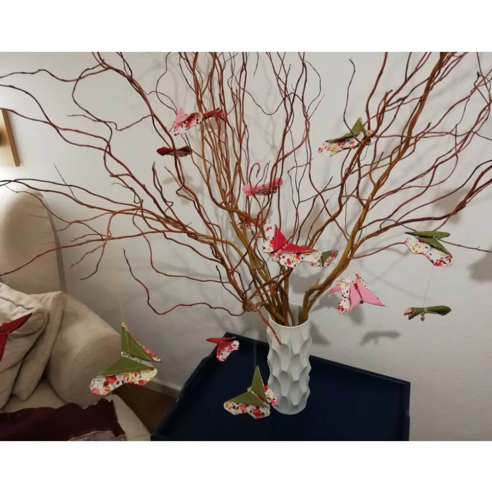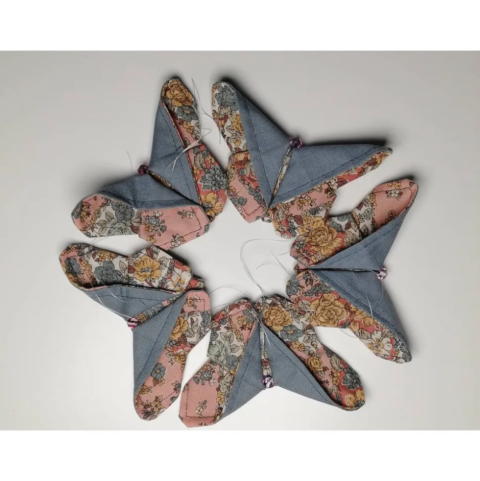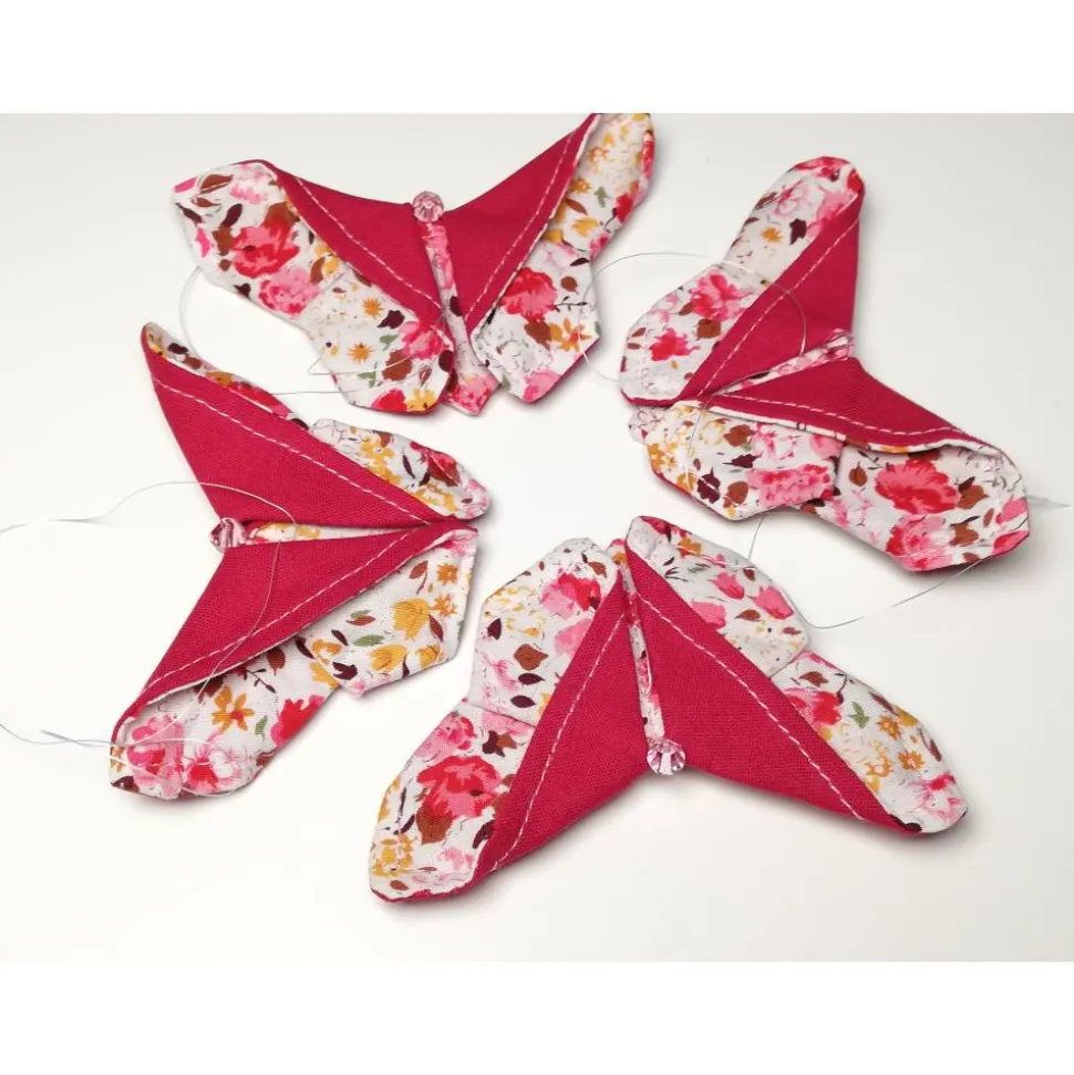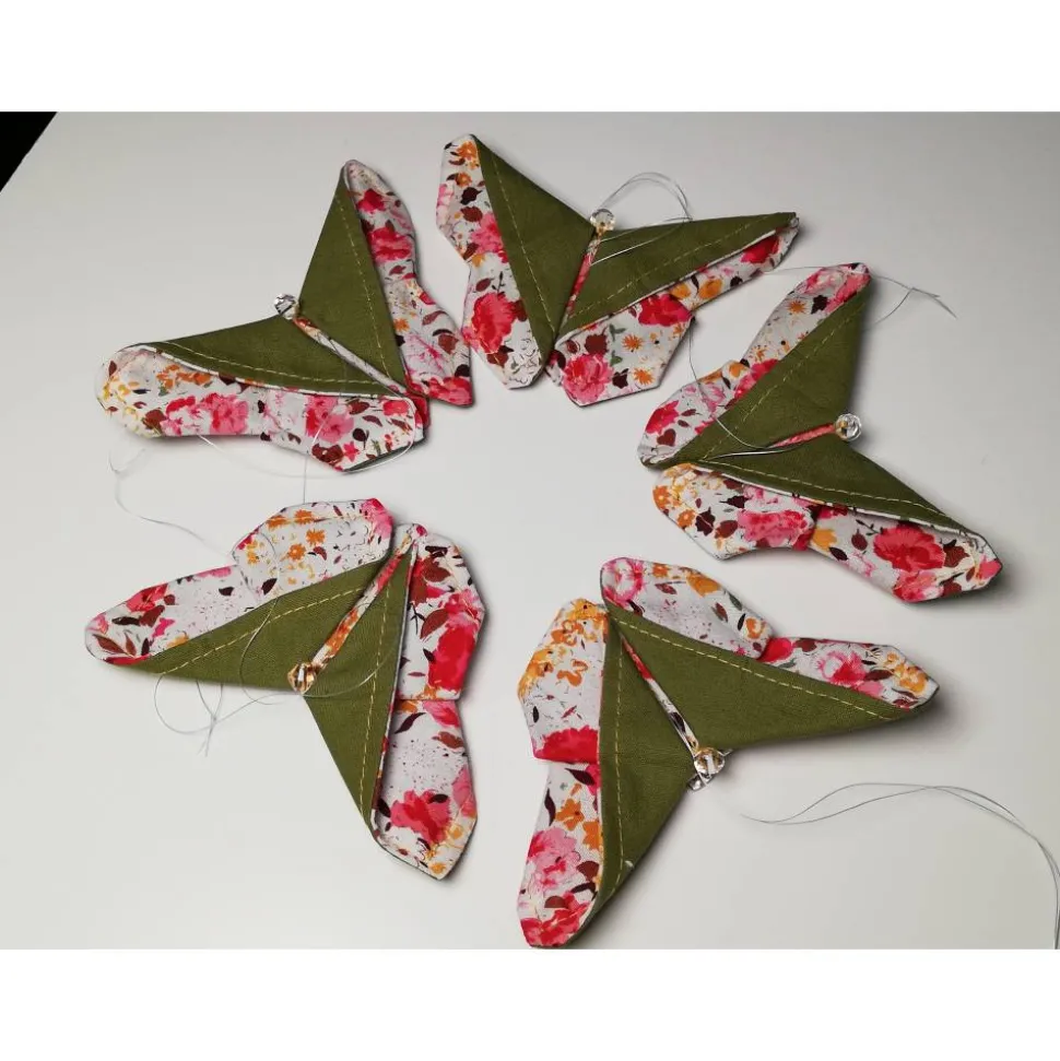 Sie bestehen aus sind aus 100% Baumwolle und werden von 2 facettierten Glasperlen geschmückt. Die Aufhängung ist ein 100% Nylonfaden, reißfest.