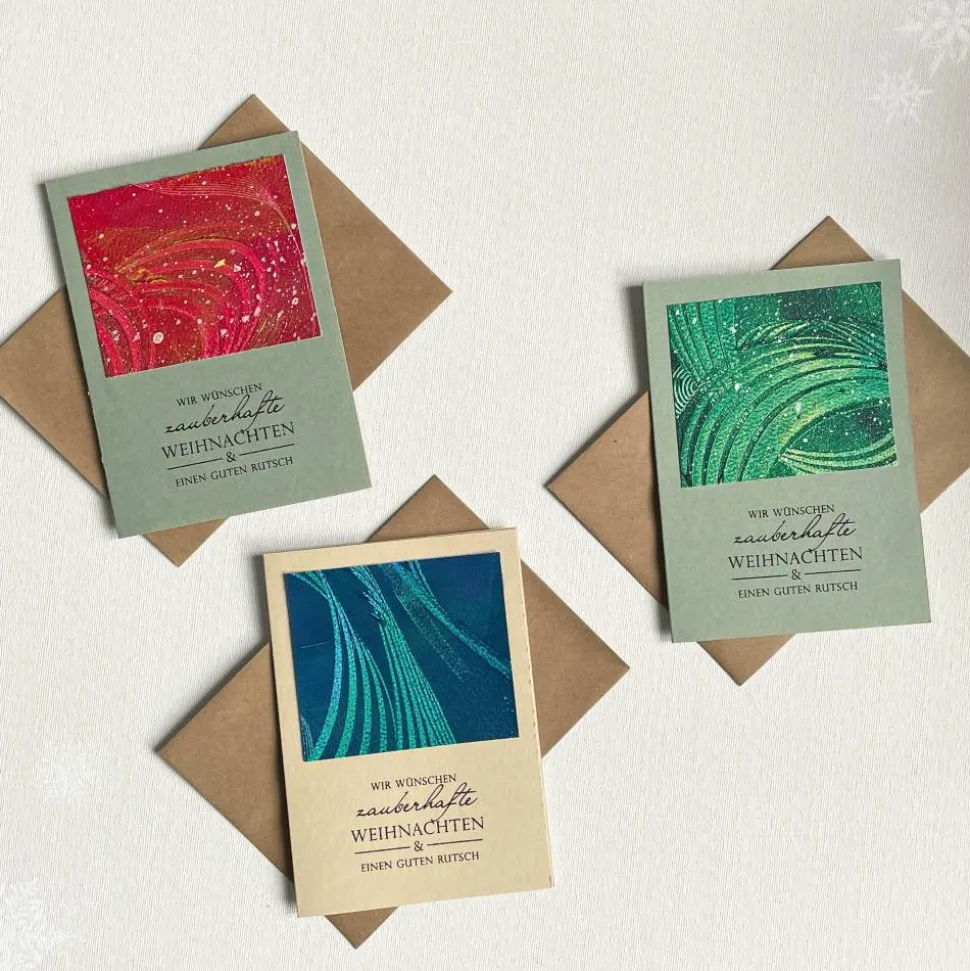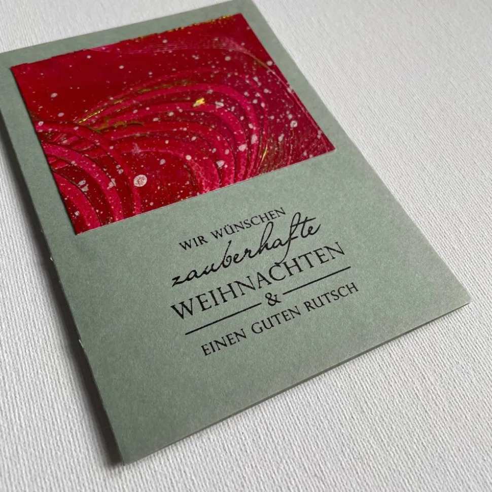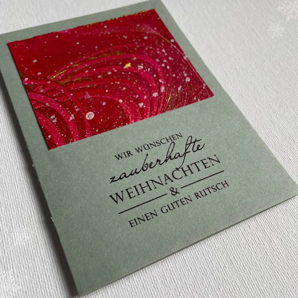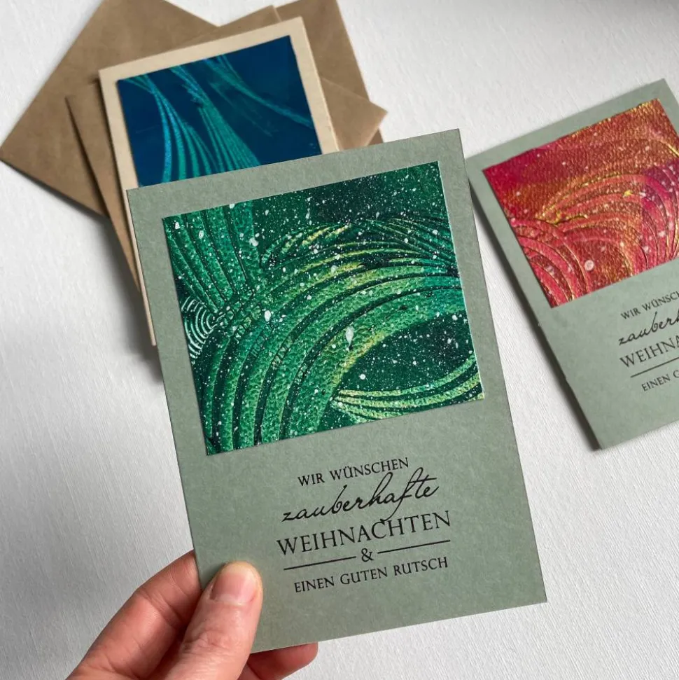 Meine handgemalten Weihnachtskarten sind ein Unikat mit festlichem Flair und ein besonderes Geschenk. Die Innenseite der Faltkarte bietet viel Platz für persönliche Worte und Wünsche. Jedes Set ist ein kleines Kunstwerk und macht die Festtage noch schöner.