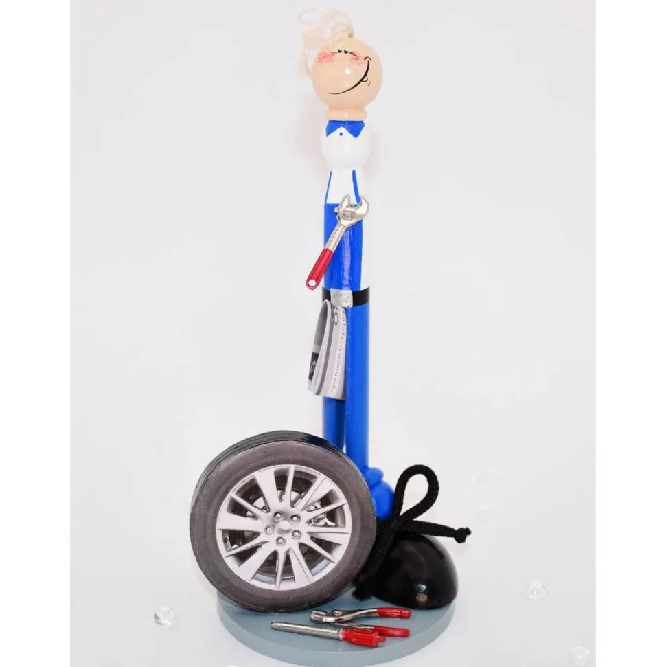 Originelles Geldgeschenk Automechaniker – Handgefertigte Holzfigur als kreative Geschenkidee