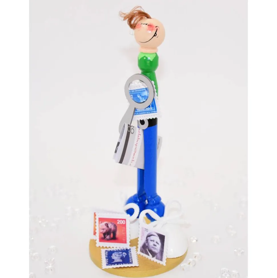 Originelles Geldgeschenk für Briefmarkensammler – Handgemachte Figur mit Briefmarken-Motiv
