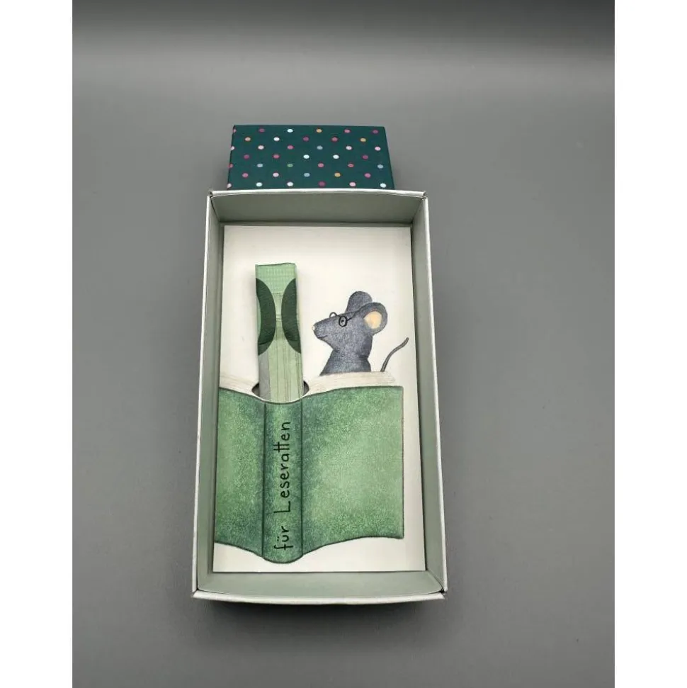 Mit dieser liebevoll gestalteten Geschenkbox hast du das perfekte Präsent für begeisterte Buchliebhaber gefunden. Hinter dem Buch versteckt sich eine kleine, handgemalte Leseratte, die als Hingucker für eine Überraschung sorgt.