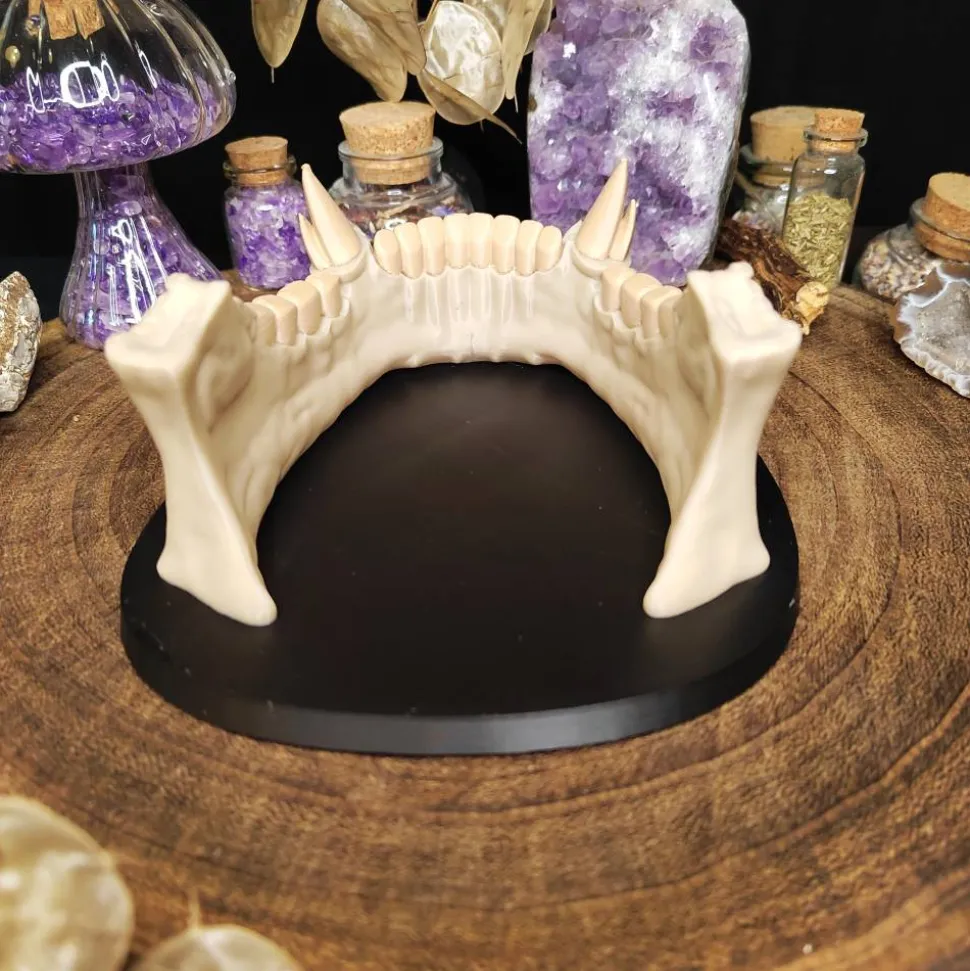 Die markanten Stoßzähne und die realistisch modellierte Knochenstruktur machen diese Halterung zu einem echten Blickfang auf deinem Schreibtisch, im Regal oder im Streaming-Setup.