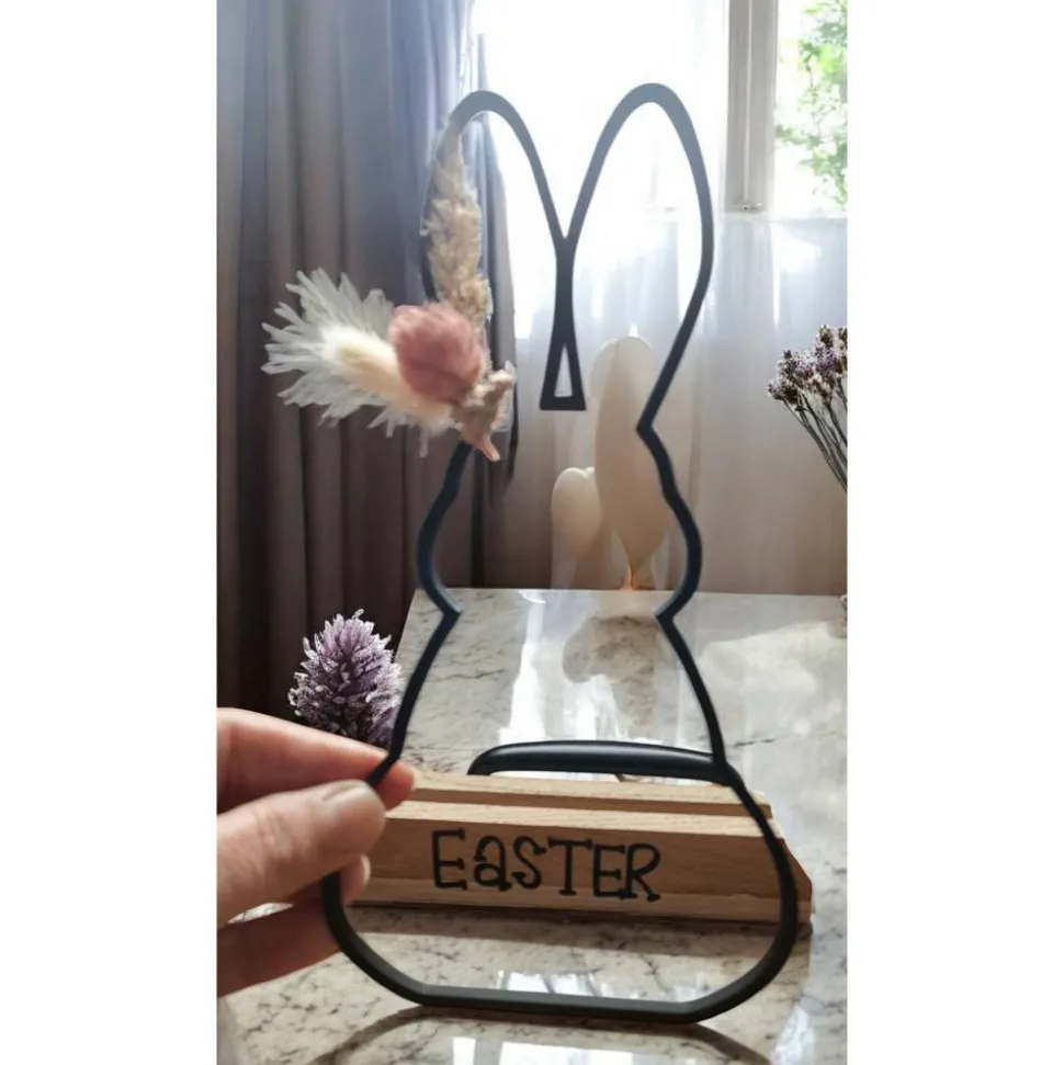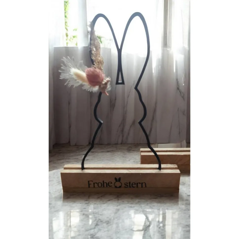 Entdecke wunderschöne Oster-Aufsteller mit Hasenmotiv und Trockenblumen, die deine Frühlingsdeko perfekt ergänzen! Du erhältst den Hase wahlweise ohne Holzständer für 7 Euro oder mit Holzständer und Wunschtext für 12 Euro.