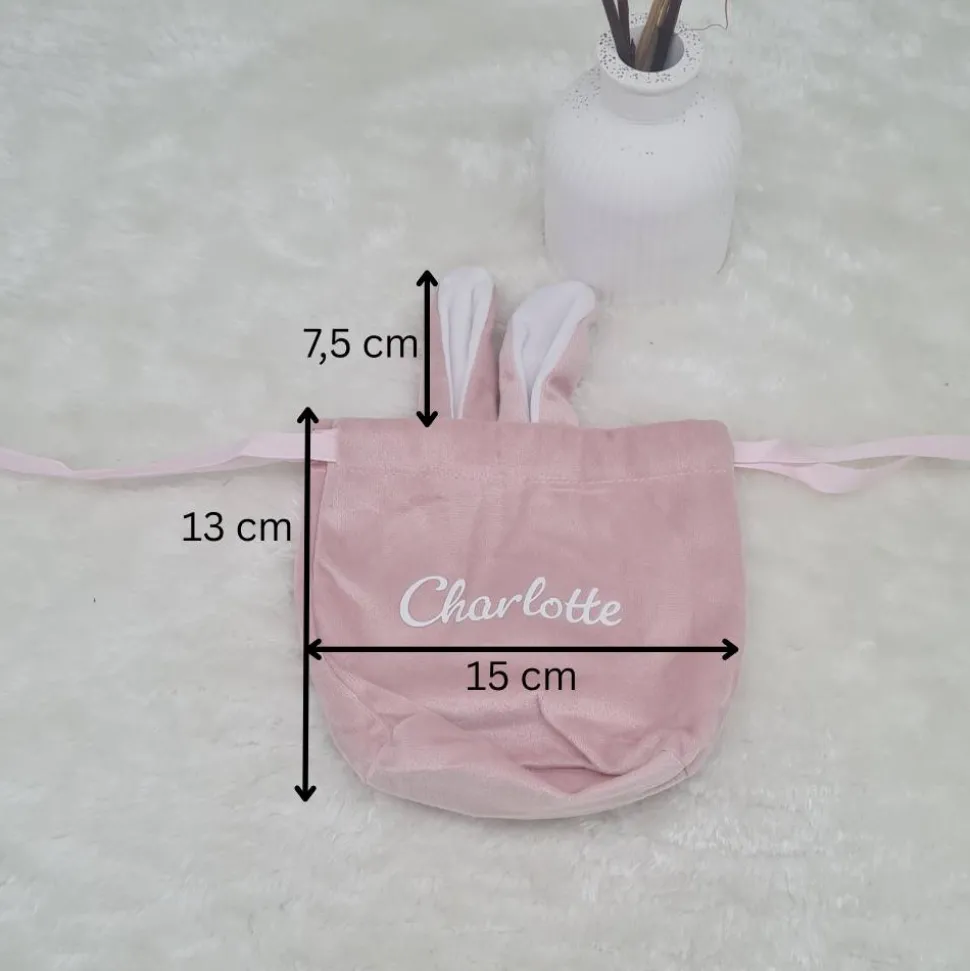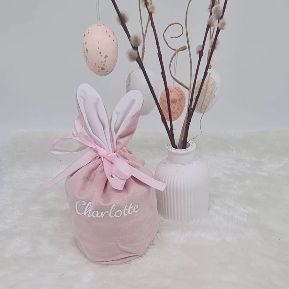 Dank des praktischen Zugbands lässt sich der Beutel einfach öffnen und schließen – ideal für Süßigkeiten, kleine Geschenke oder als persönliches Osternest. Die verspielten Hasenohren machen ihn zu einem echten Hingucker und lassen Kinder- wie Erwachsenenherzen höherschlagen.