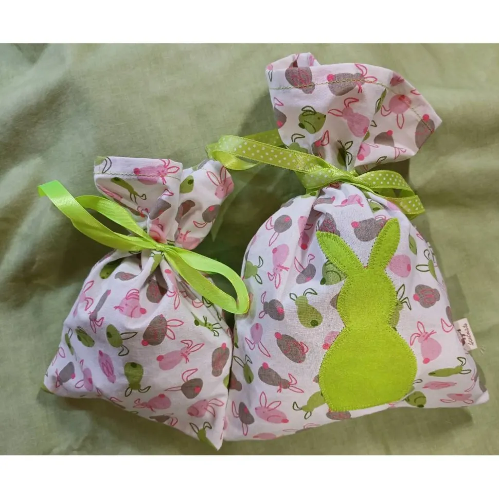 Der größere Beutel ist mit einem Hasen-Patch