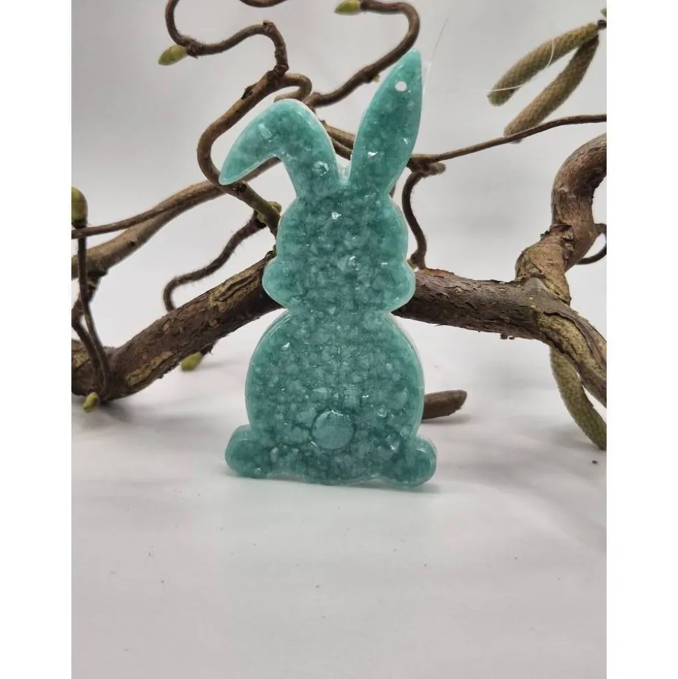 Diese zauberhaften kleinen Hasen bringen pure Magie in deine Dekoration. Jeder Hase wird liebevoll von Hand gefertigt und begeistert mit seinem einzigartigen Druzy-Effekt, der wie funkelnde Kristalle im Licht schimmert. Die zarten Mint und die glitzernden Akzente machen jedes Stück zu einem echten Blickfang.