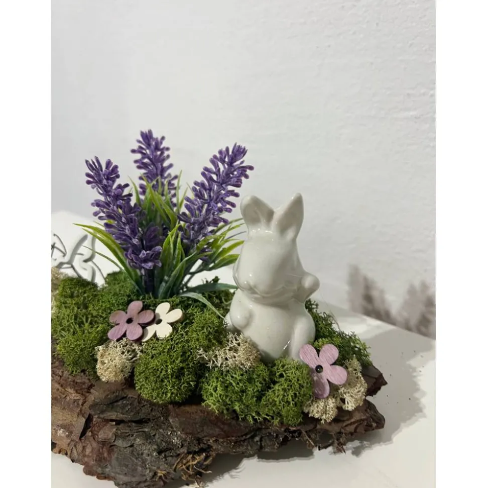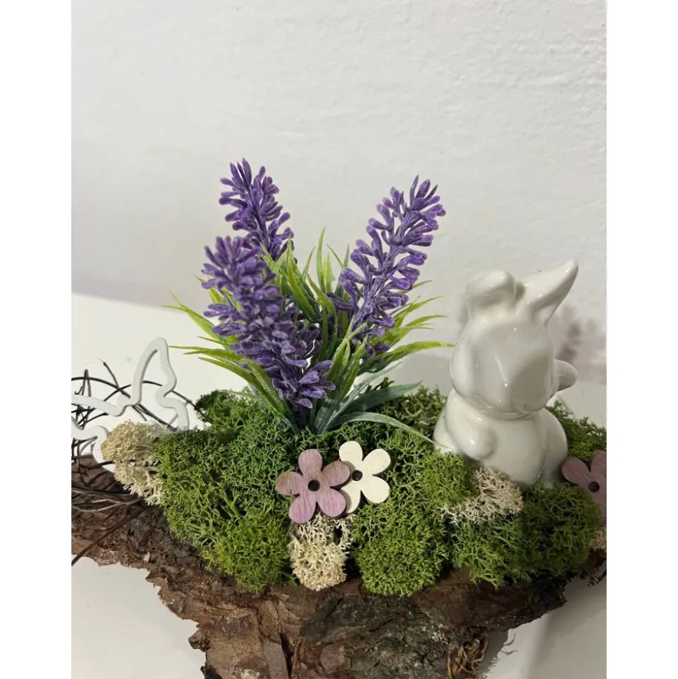 Hier biete ich ein schönes Ostergesteck auf einer Baumrinde an, das ich mit sehr viel Liebe zum Detail hergestellt habe 🙂
