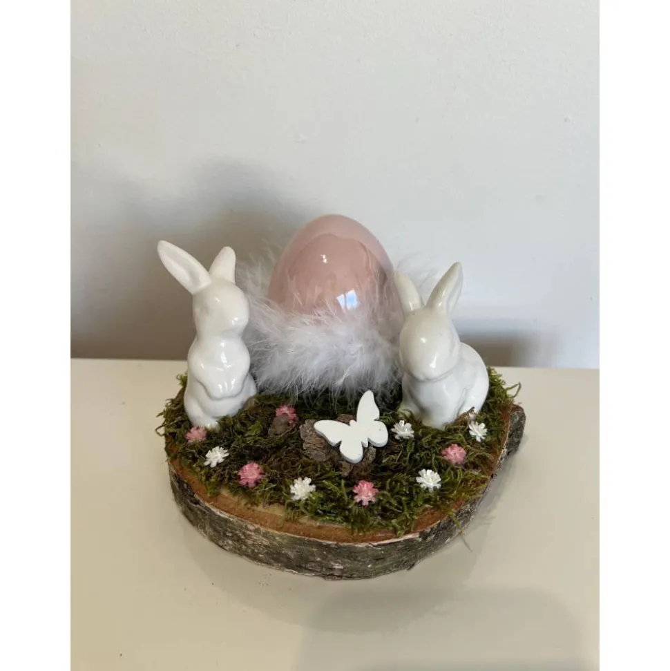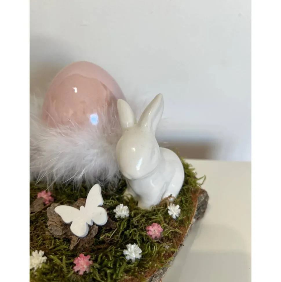 Hier biete ich ein süßes Ostergesteck auf einer Baumscheibe an, dass ich mit sehr viel Liebe zum Detail hergestellt habe 🙂