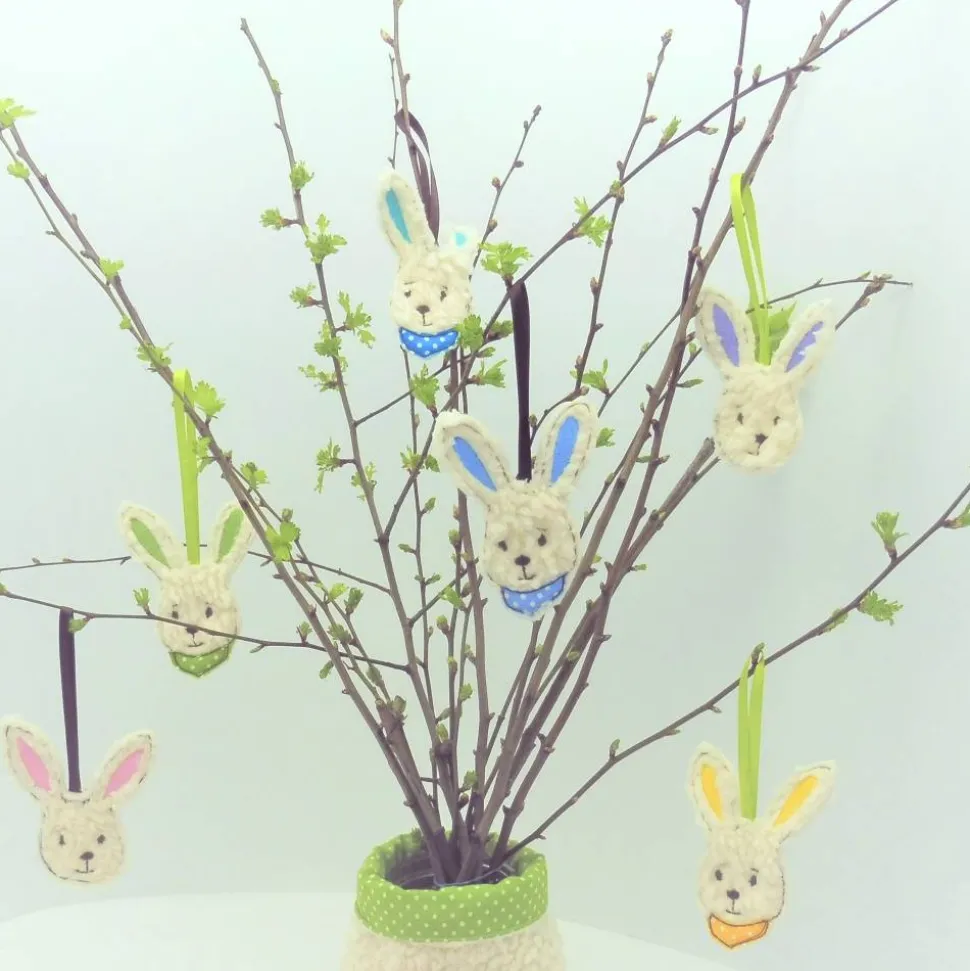 Die niedlichen, gestickten Hasenkopf-Anhänger aus kuschelig-weichem Teddyplüsch sind die perfekte Frühlingsdeko für dein Zuhause. Ob als Blickfang im Osterstrauch, als liebevoller Geschenkanhänger oder – ohne Band – als dekorative Tischdeko beim Oster-Brunch: Diese süßen Osterhasen begeistern Groß und Klein.