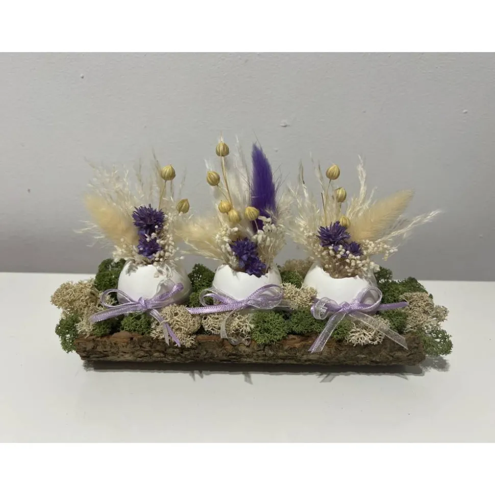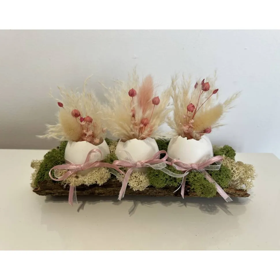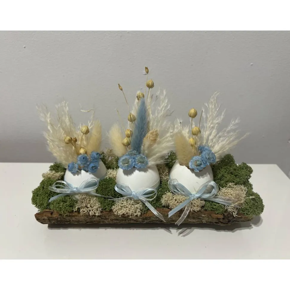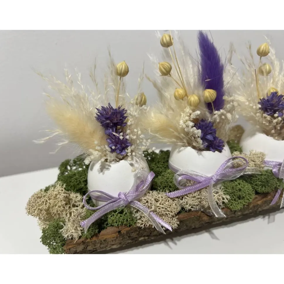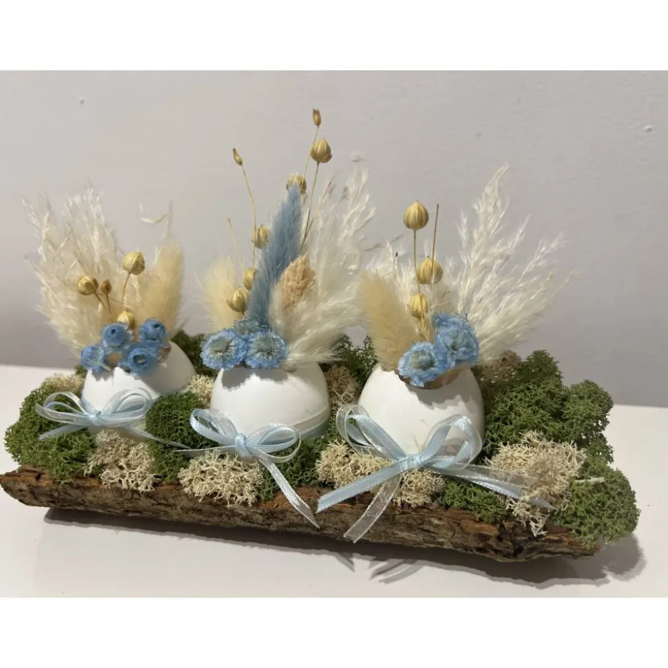 Hier biete ich verschiedene schöne Ostergestecke mit echten Eier und Trockenblumen auf einer Baumrinde an, die ich mit sehr viel Liebe zum Detail selbst hergestellt habe 🙂