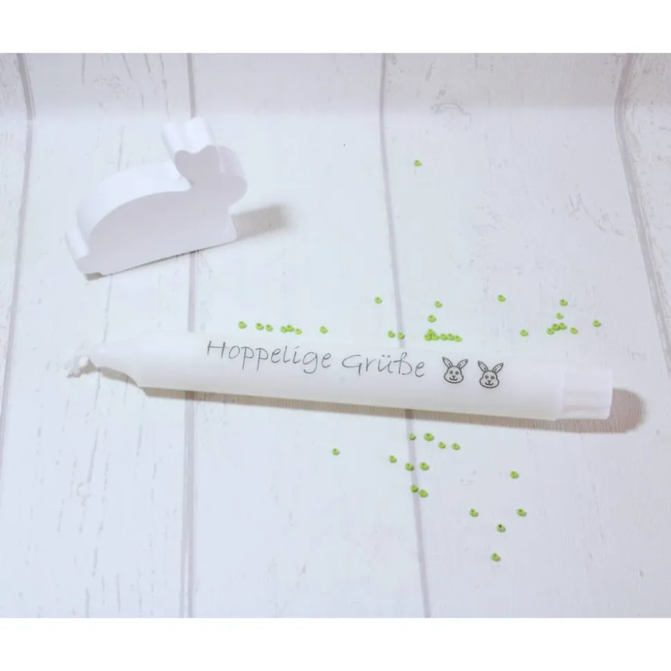 Hier ist eine von mir handgefertigte Stabkerze in Weiß mit einem Schriftzug in Schwarz. Die Kerze wird unverpackt oder in Folie verpackt geliefert. Die liebevolle Verpackung in Folie beinhaltet noch einen Anhänger. Der Anhänger kann von dem Produktfoto abweichen und ist variabel. Eine alternative Verpackung (Holz oder Karton) ist ebenfalls möglich. Meldet Euch hierzu einfach bei mir. Geliefert wird nur die Kerze, ohne Halter und Dekoration.