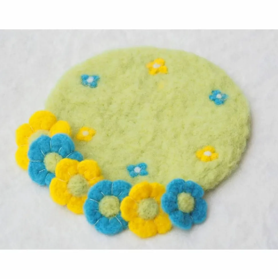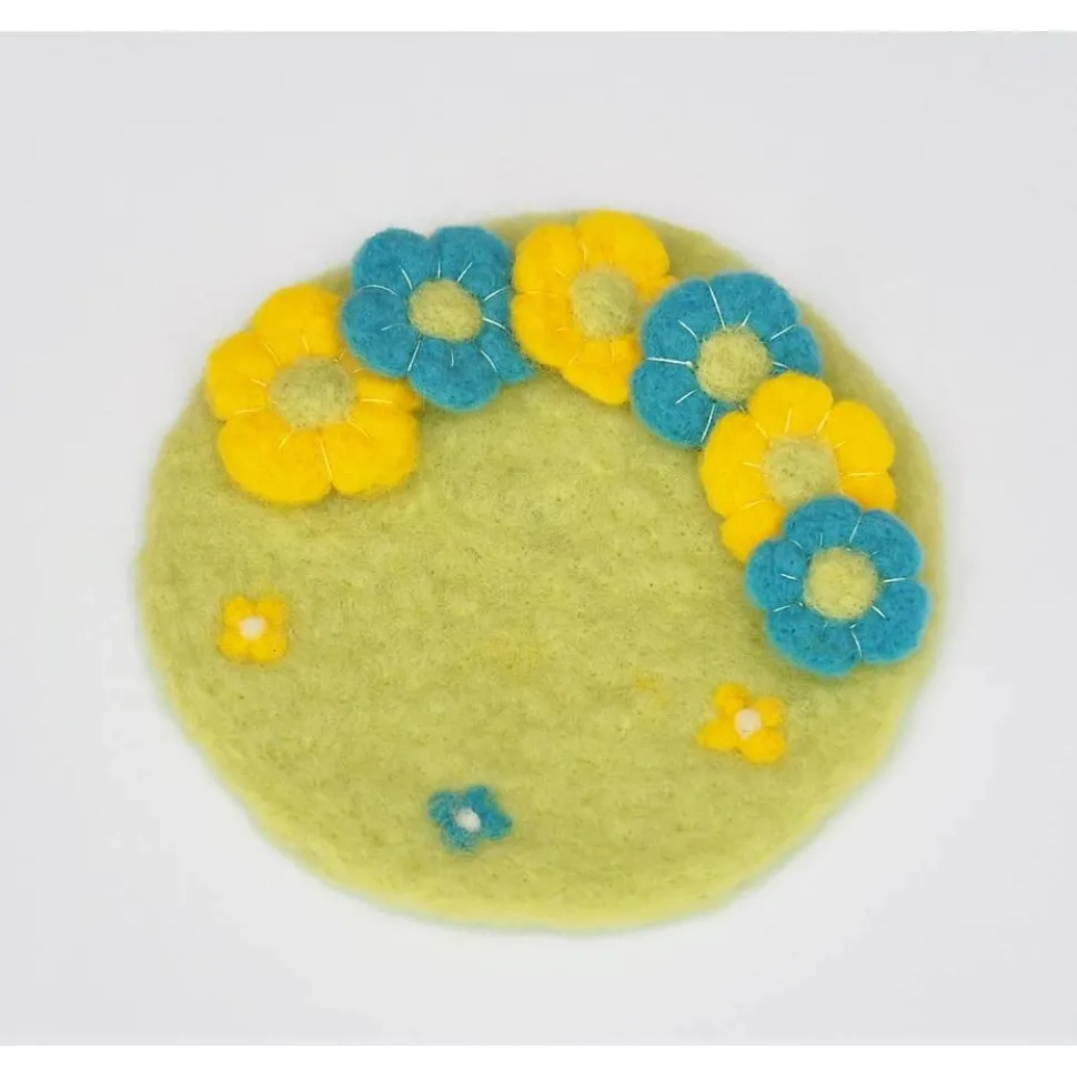 Dekoriere zur Frühlings- oder Osterzeit dein zu Hause mit dieser zauberhaften Blumenwiese aus Nadelfilz. Die Wiese eignet sich toll als Tischdeko oder dekoriere sie mit anderen Osterartikeln. Auch toll als Osternestdeko! Sie wird in Handarbeit aus 100 % Wolle angefertigt. Die runde Wiese ist in einem zarten hellgrünen Ton, die Blumen sind in mittelblauem und gelborangenem Ton gearbeitet. Sie hat eine handliche Größe von ca 17,5 cm Durchmesser.