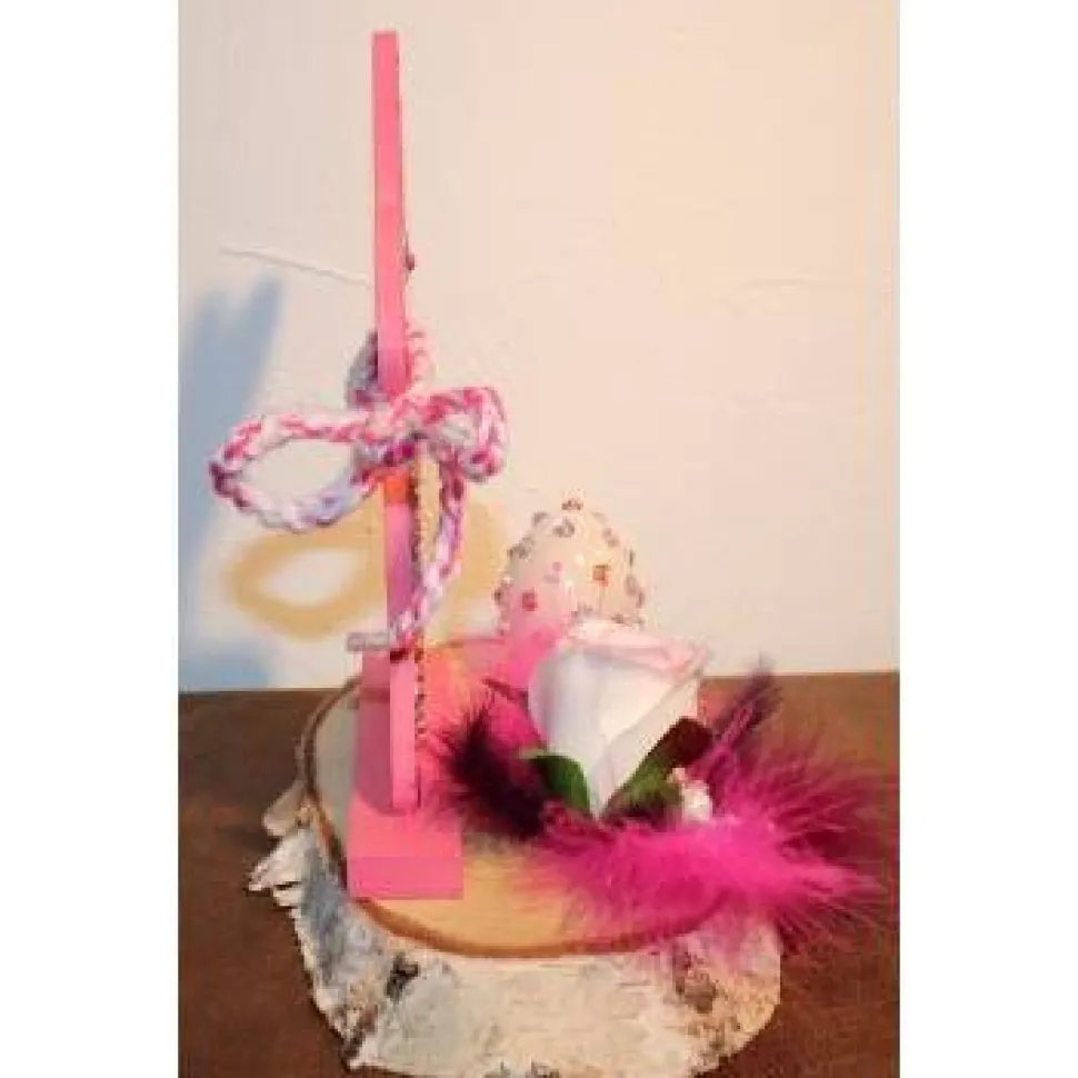 Maße: Baumscheibe: ca. 26 x 13 cm, Ei: ca. 6 x 4 cm, die Rose ist ca. 5cm hoch (jeweils an der dicksten/höchsten Stelle gemessen)