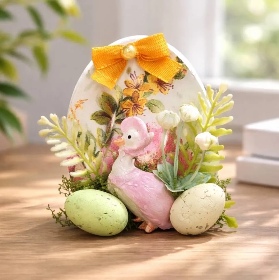 Die wunderschöne Osterdekoration besteht aus zwei Elementen die sofort ins Auge fallen: