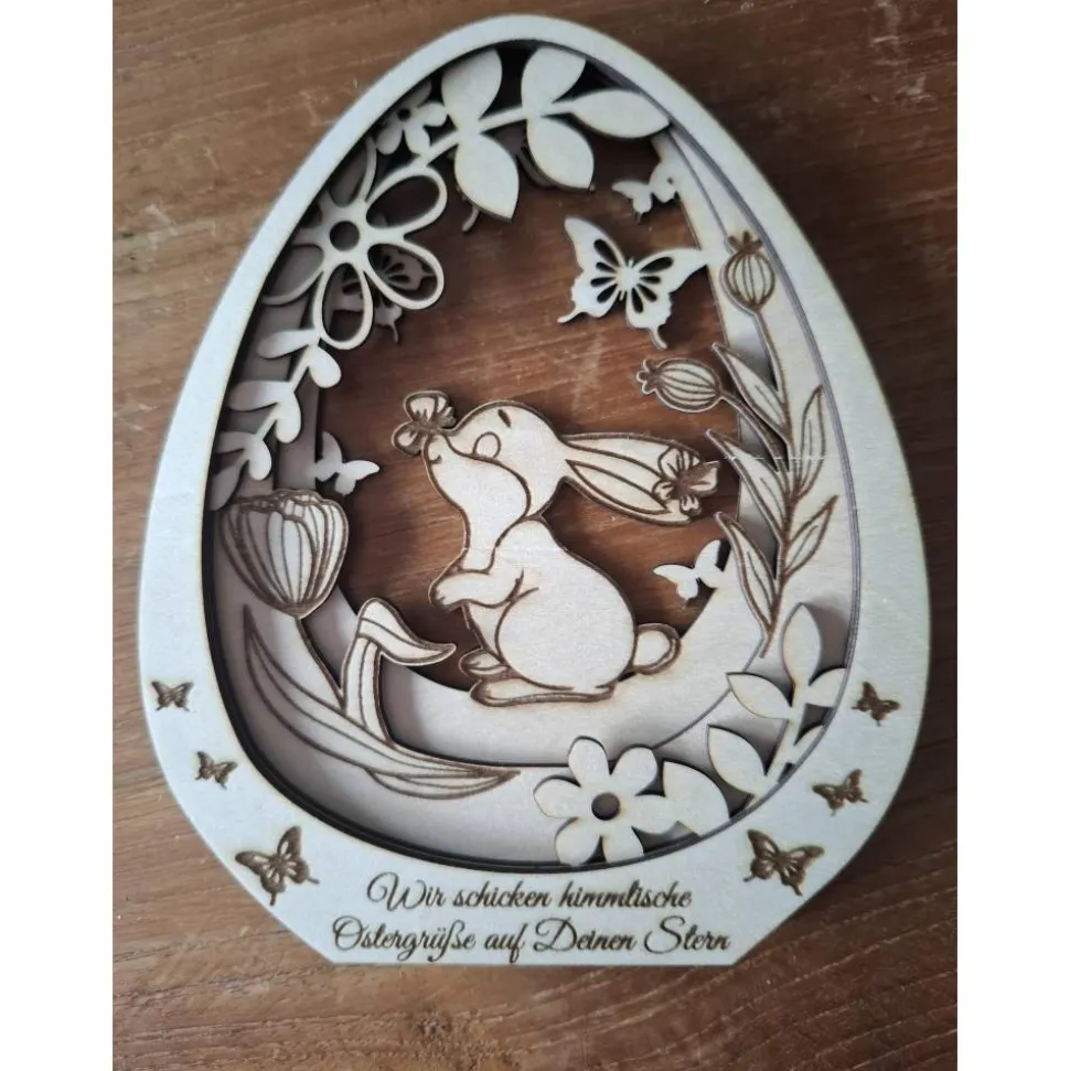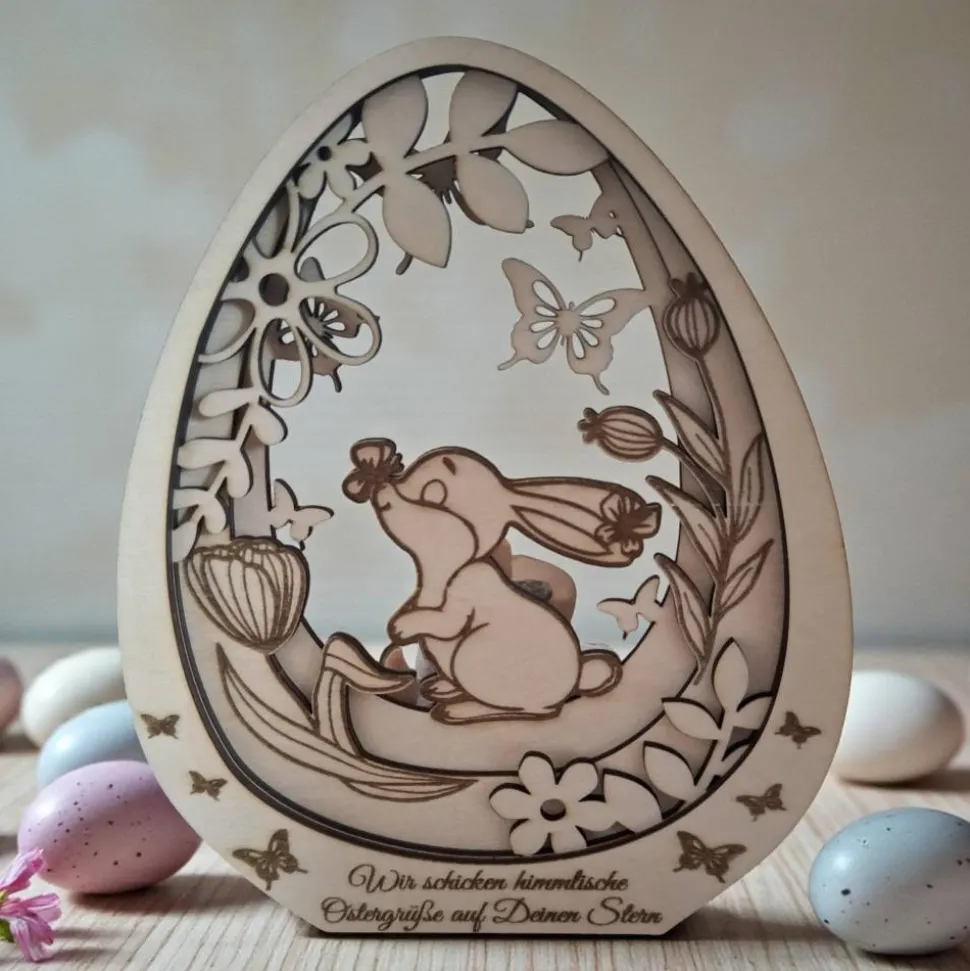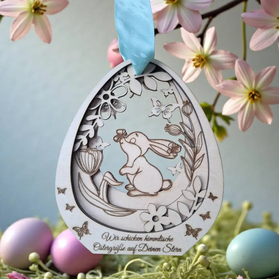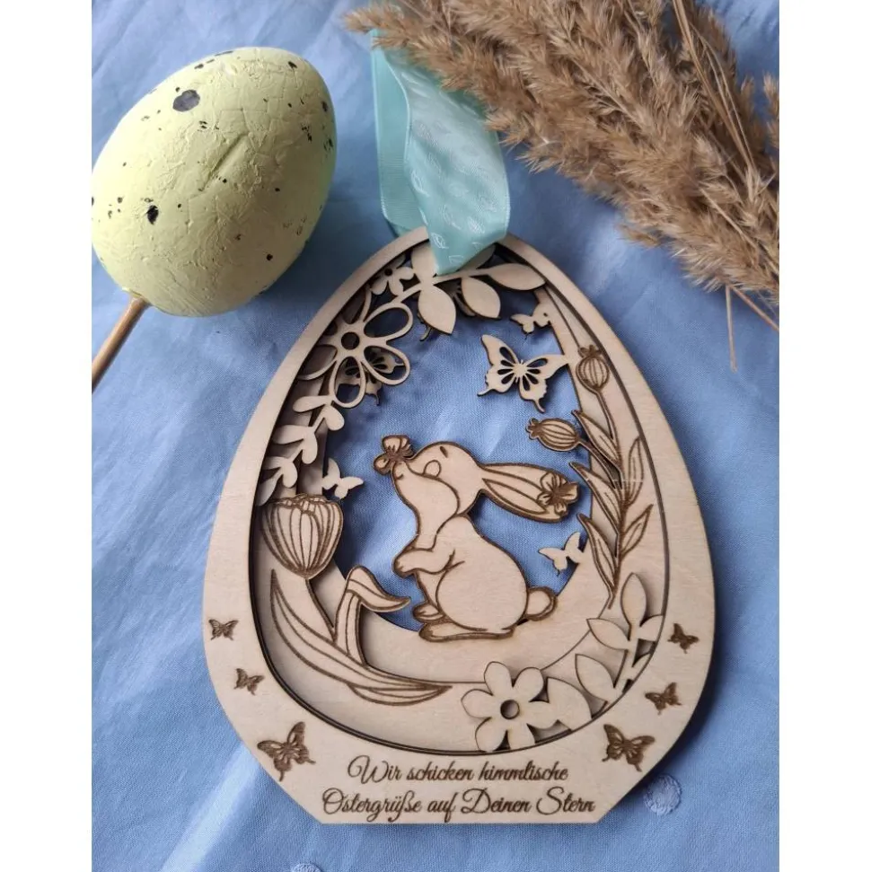 Dieser schöne Anhänger ist mit einem niedlichen Hasen und zarten Schmetterlingen verziert, die eine fröhliche Frühlingsatmosphäre schaffen. Doch das Besondere an diesem Produkt ist die Möglichkeit der Personalisierung: Du kannst es mit einem Namen oder einem besonderen Datum gravieren lassen, um eine bleibende Erinnerung an Dein Sternenkind oder einen geliebten Menschen zu schaffen. Diese Holzdekoration ist nicht nur ein schöner Blickfang, sondern auch ein einfühlsames Andenken, das Trost spenden kann. Ob als Geschenk für Trauernde oder als persönliche Erinnerung – dieses Osterei bringt Licht und Liebe in Dein Zuhause und zeigt, dass die Erinnerungen an unsere Liebsten für immer in unseren Herzen weiterleben.