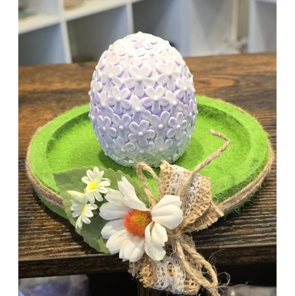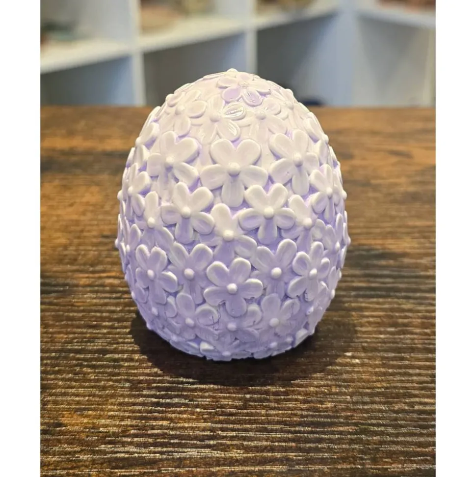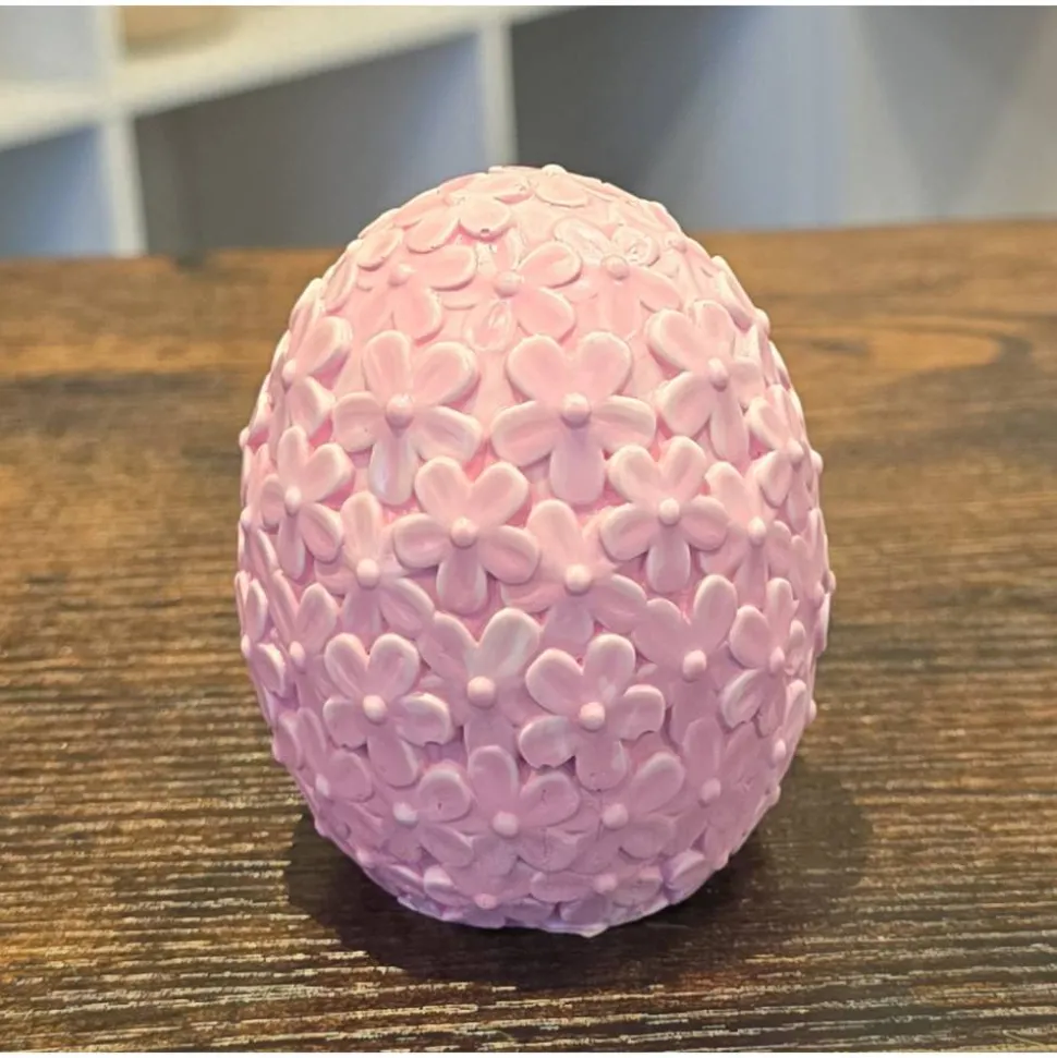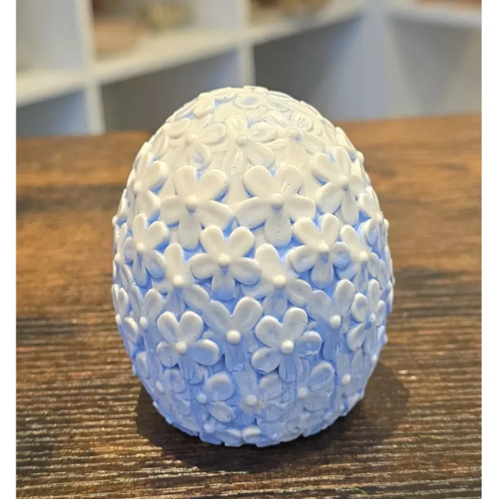 Die Eier sind aus Xyrarock und handbemalt, haben ca. 6,5 cm Durchmesser und sind ca. 8,0 cm hoch.