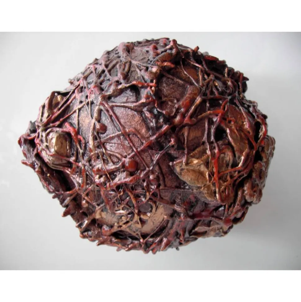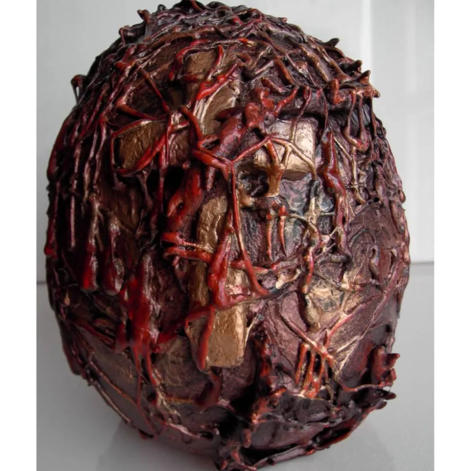 Mit Modelliermasse und Acrylfarben in Kupfer, Gold Schwarz und Rot mystisch gestaltet.