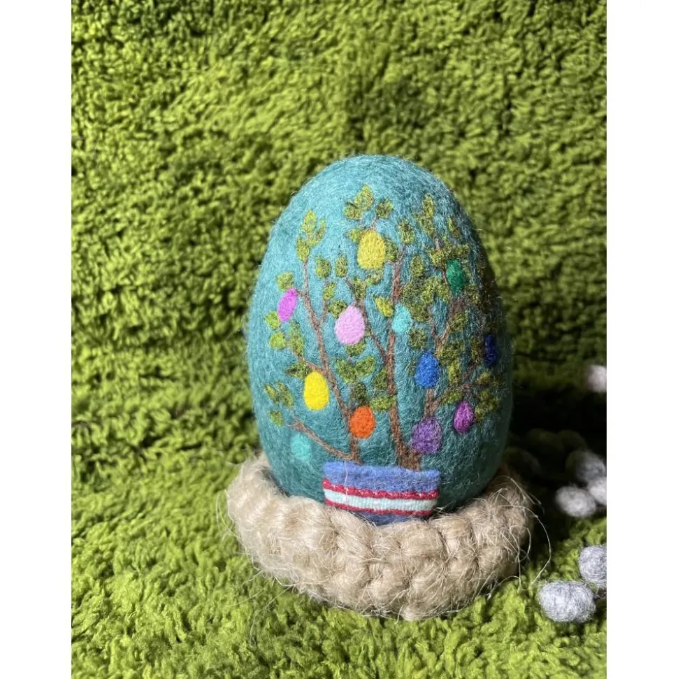 Mit einer Höhe von etwa 12 cm ist das Ei ein wunderschöner Hingucker für jede Ostern- oder Frühlingsdekoration. Durch die Kombination von Nass- und Nadelfilzen entsteht ein filigranes, festes und dennoch leichtes Kunstwerk, das durch die detailreiche Handarbeit zu einem besonderen Dekorationsstück wird.