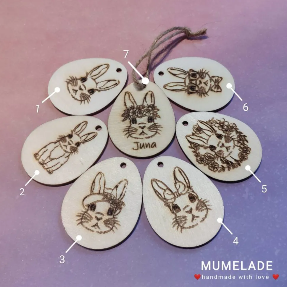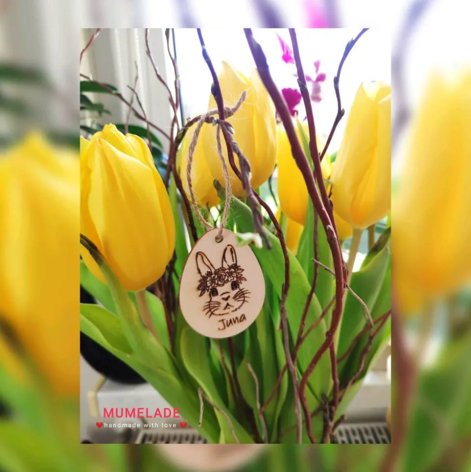 Süße kleine Ostereier mit Hasenmotiven und Namen.