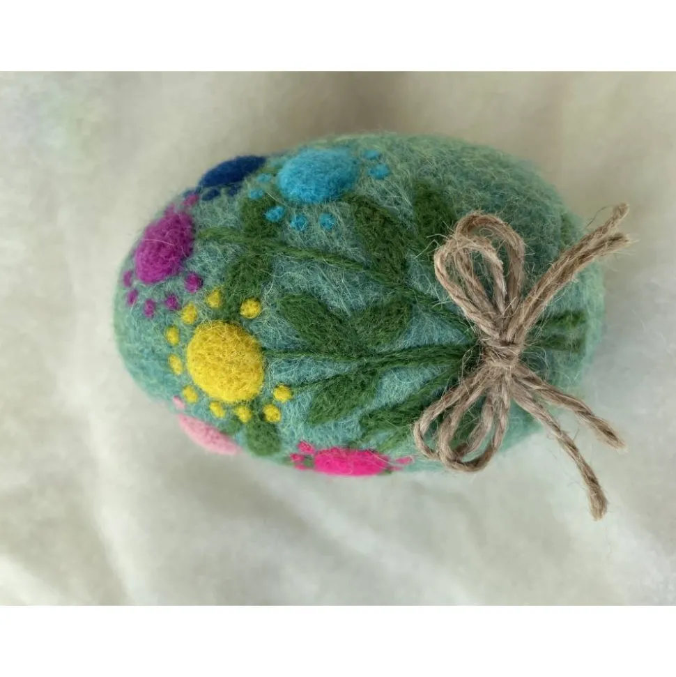 Feiern Sie die Freude des Osterfestes mit diesem frühlingshaften Osterei, das mit einem atemberaubenden nadelgefilzten Blumenstrauß verziert ist.