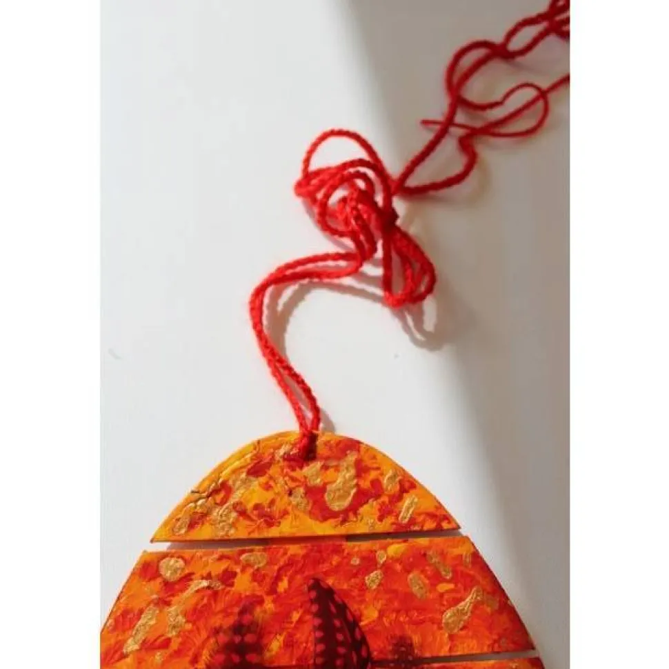 Zur Aufhängung dient ein gehäkeltes Bändchen.