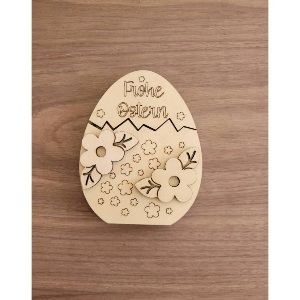 Das Ei ist mit modernen Lasertechniken graviert und gelasert. Auf Wunsch können wir auch einen persönlichen Namen auf der Rückseite verewigen. Der Deckel lässt sich leicht anheben, um den Geldschein sicher hineinzulegen.