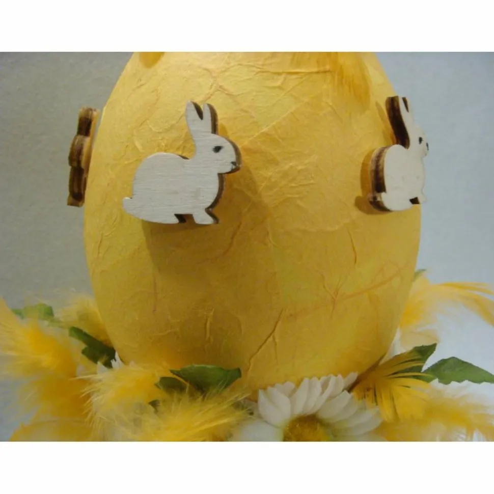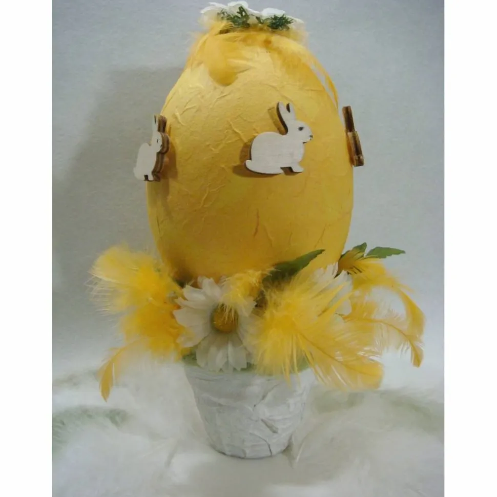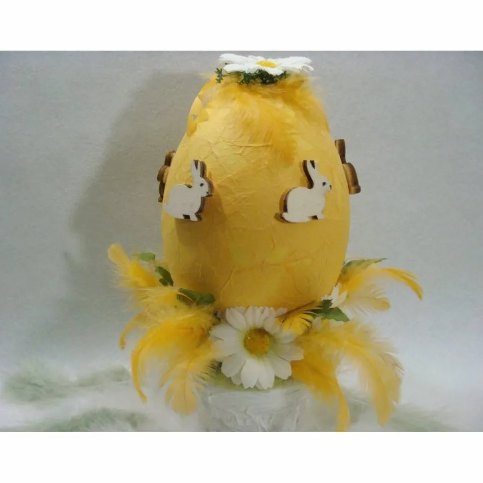 Material: Styroporei,Tontopf,Strohseide, Holzhasen.Margariten,Federn.