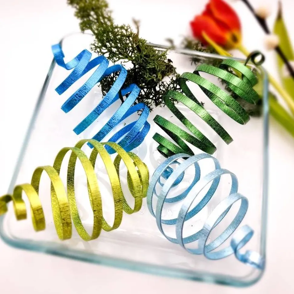 Die Eier können an Zweigen oder Ästen deines Osterarrangements aufgehängt werden und machen es sofort zum Blickfang. Ihre Anwendungsmöglichkeiten sind vielfältig, denn sie eignen sich sowohl für den Innen- als auch für den Außenbereich. Dank des weißen Satinbands, an dem sie hängen, drehen sie sich bei jedem kleinen Luftzug leicht hin und her, was einen zusätzlichen Effekt bietet. Die Drahteier sind wetterfest, wodurch sie auch im Garten zu einem schönen Hingucker werden, sei es an deinem Osterstrauch oder Baum.