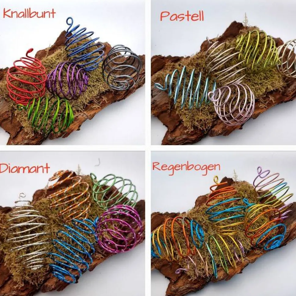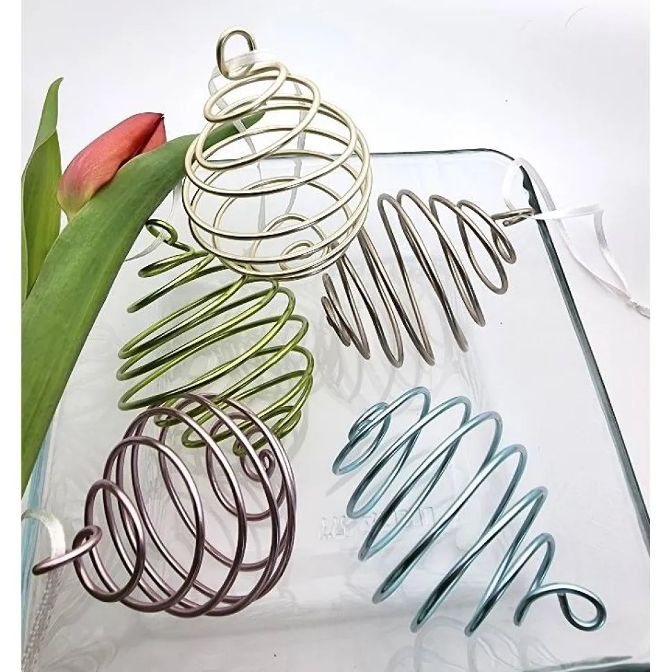 Die Eier können an Zweigen oder Ästen deines Osterarrangements aufgehängt werden und machen es sofort zum Blickfang. Ihre Anwendungsmöglichkeiten sind vielfältig, denn sie eignen sich sowohl für den Innen- als auch für den Außenbereich. Dank des weißen Satinbands, an dem sie hängen, drehen sie sich bei jedem kleinen Luftzug leicht hin und her, was einen zusätzlichen Effekt bietet. Die Drahteier sind wetterfest, wodurch sie auch im Garten zu einem schönen Hingucker werden, sei es an deinem Osterstrauch oder Baum.