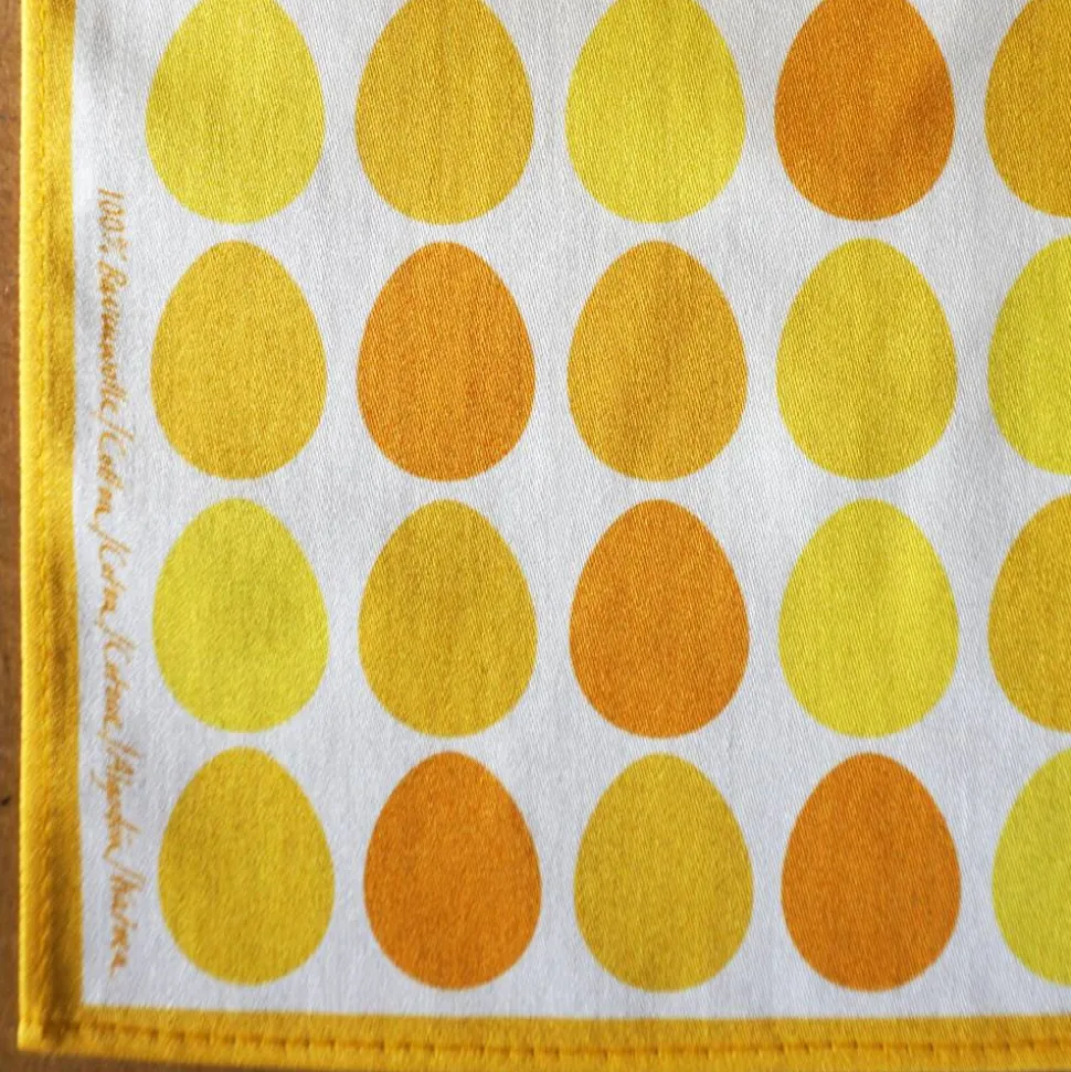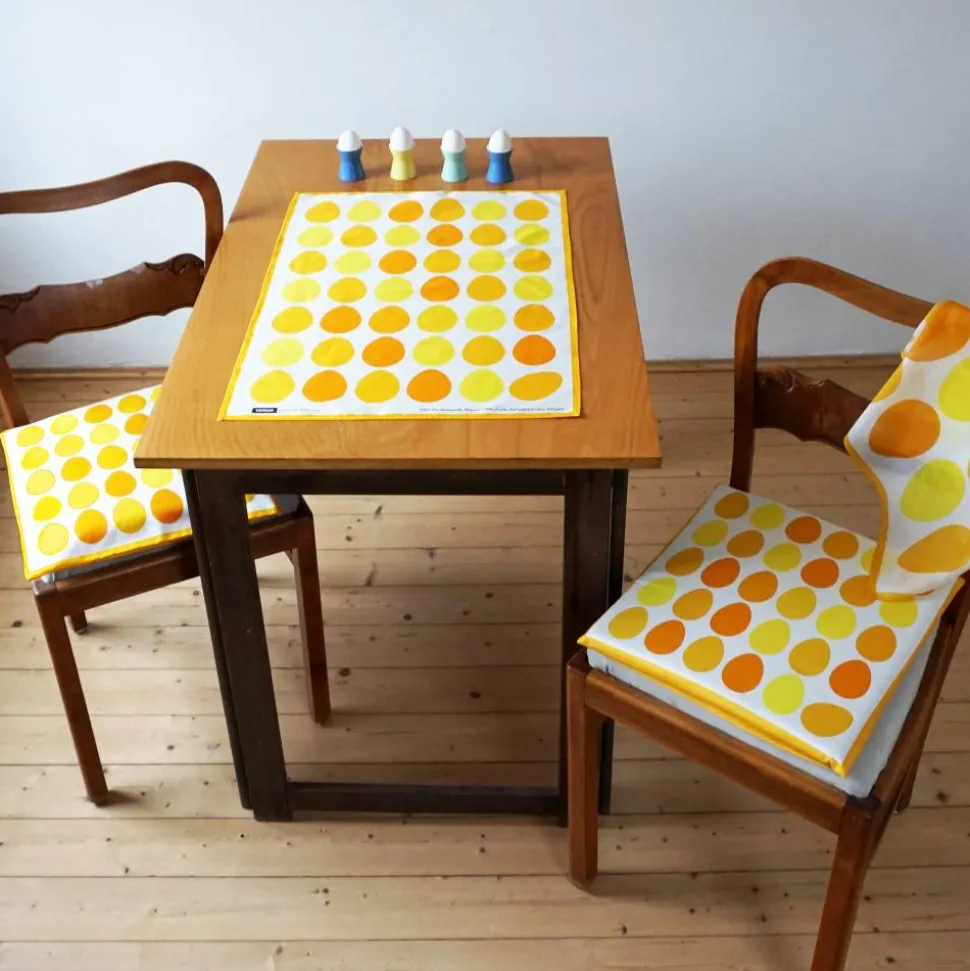 Das Ei-Motiv gibt es auch als Geschenkpapier, als Halstücher, Stoffbeutel, Kissenbezug und Tischläufer.